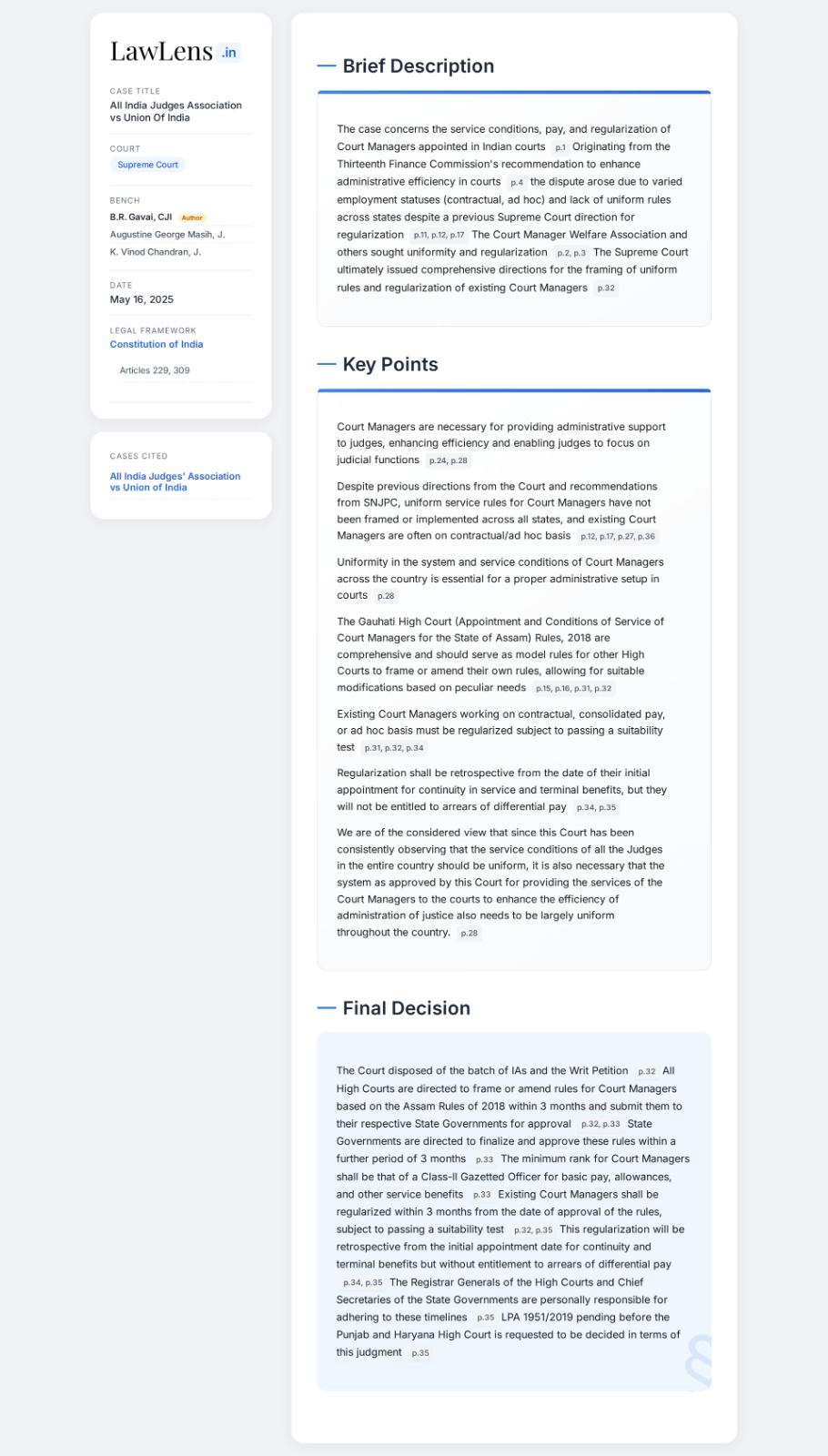 All India Judges Association vs Union Of India 2025 INSC 713 - Court Managers – Recruitment & Conditions Of Service