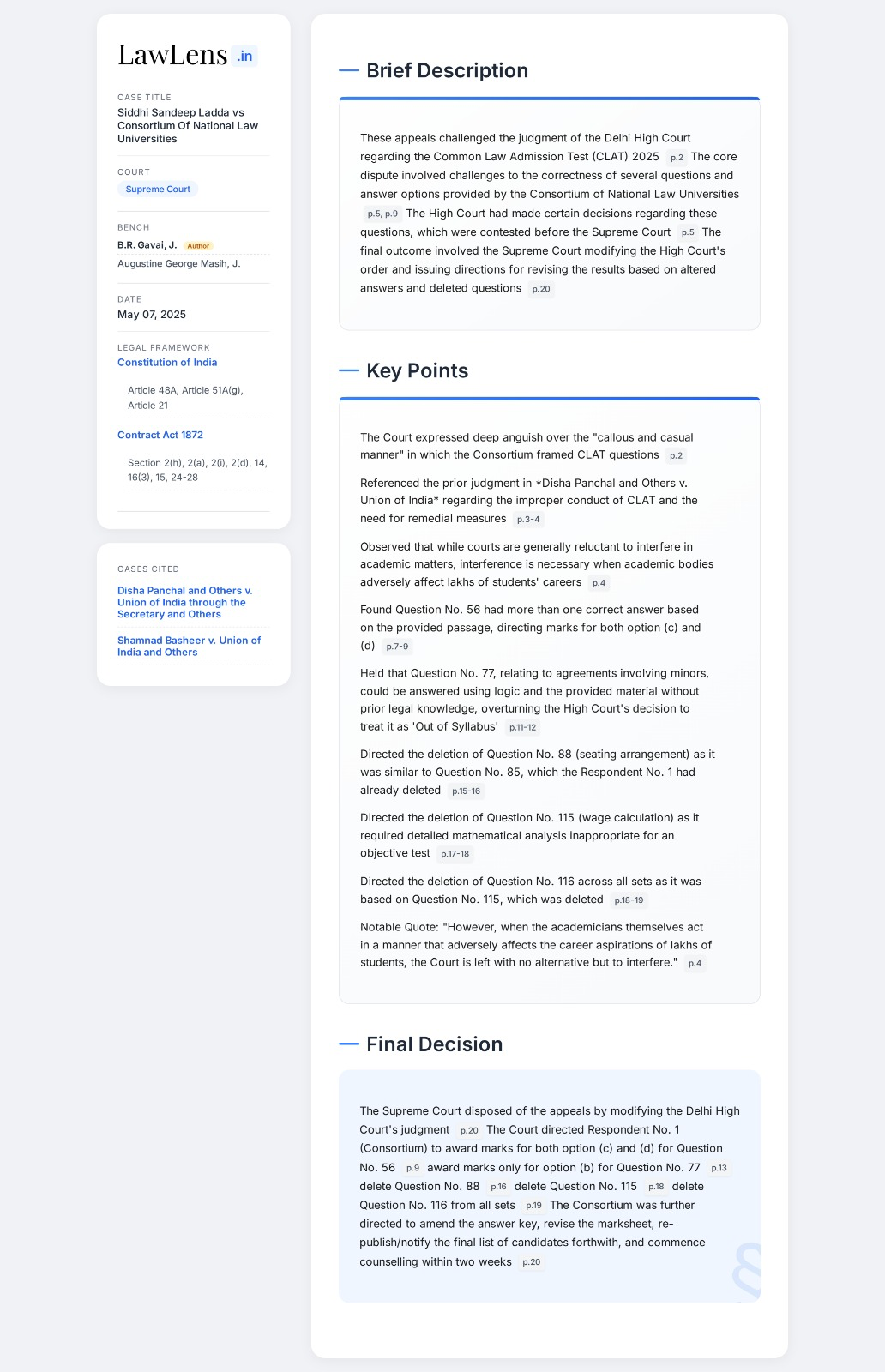 Siddhi Sandeep Ladda vs Consortium Of National Law Universities 2025 INSC 714 - CLAT Exams