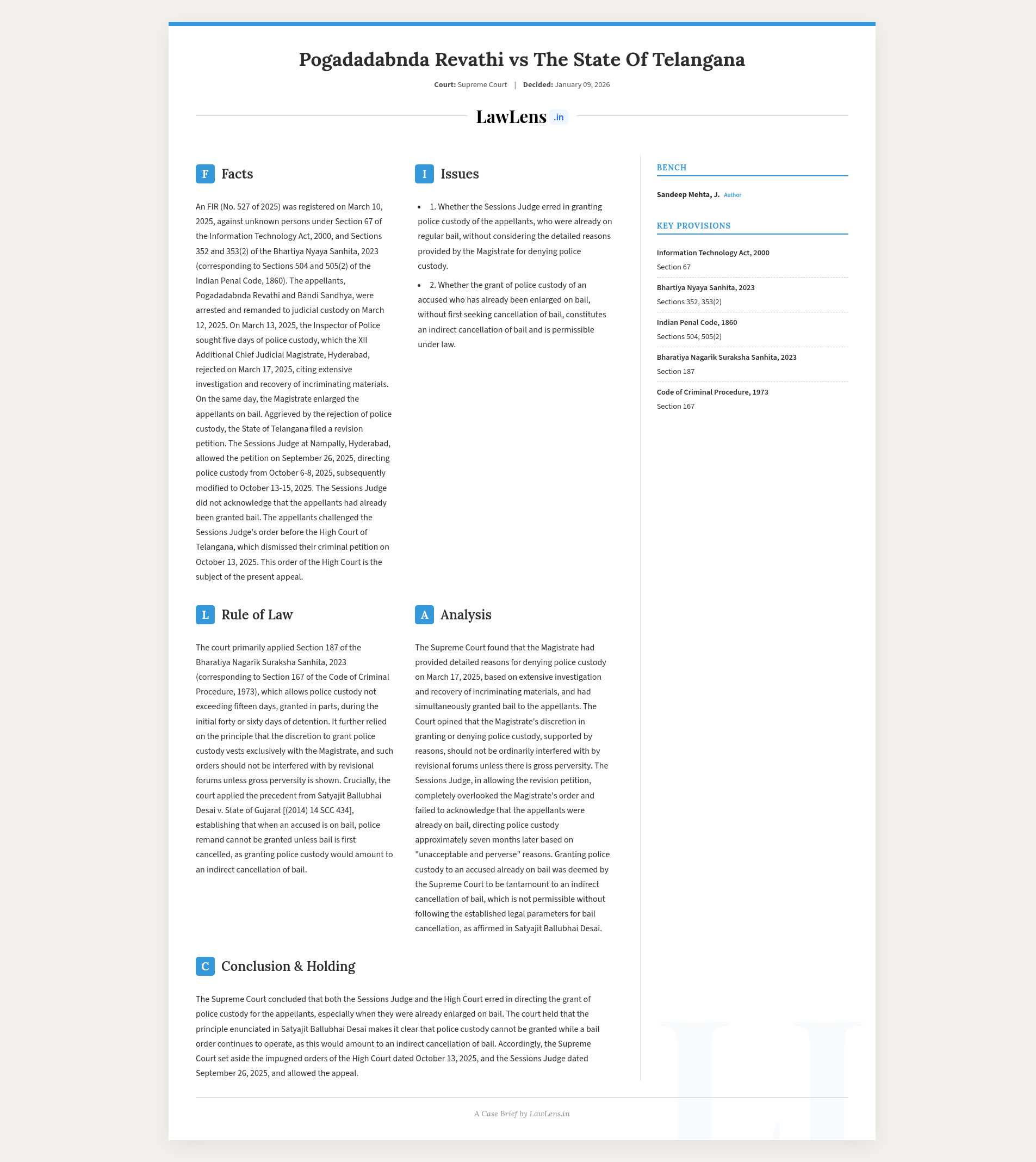 Pogadadabnda Revathi & Anr. v. State of Telangana; 2026 INSC 75.