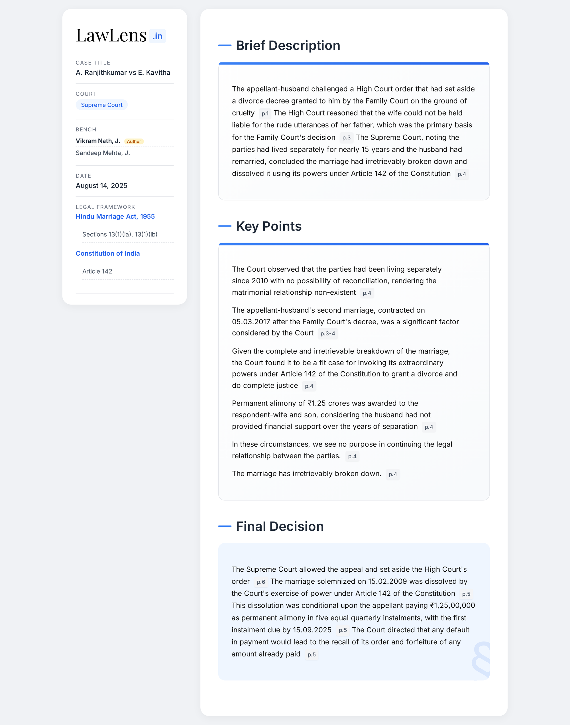 - Case Name: A. Ranjithkumar v. E. Kavitha