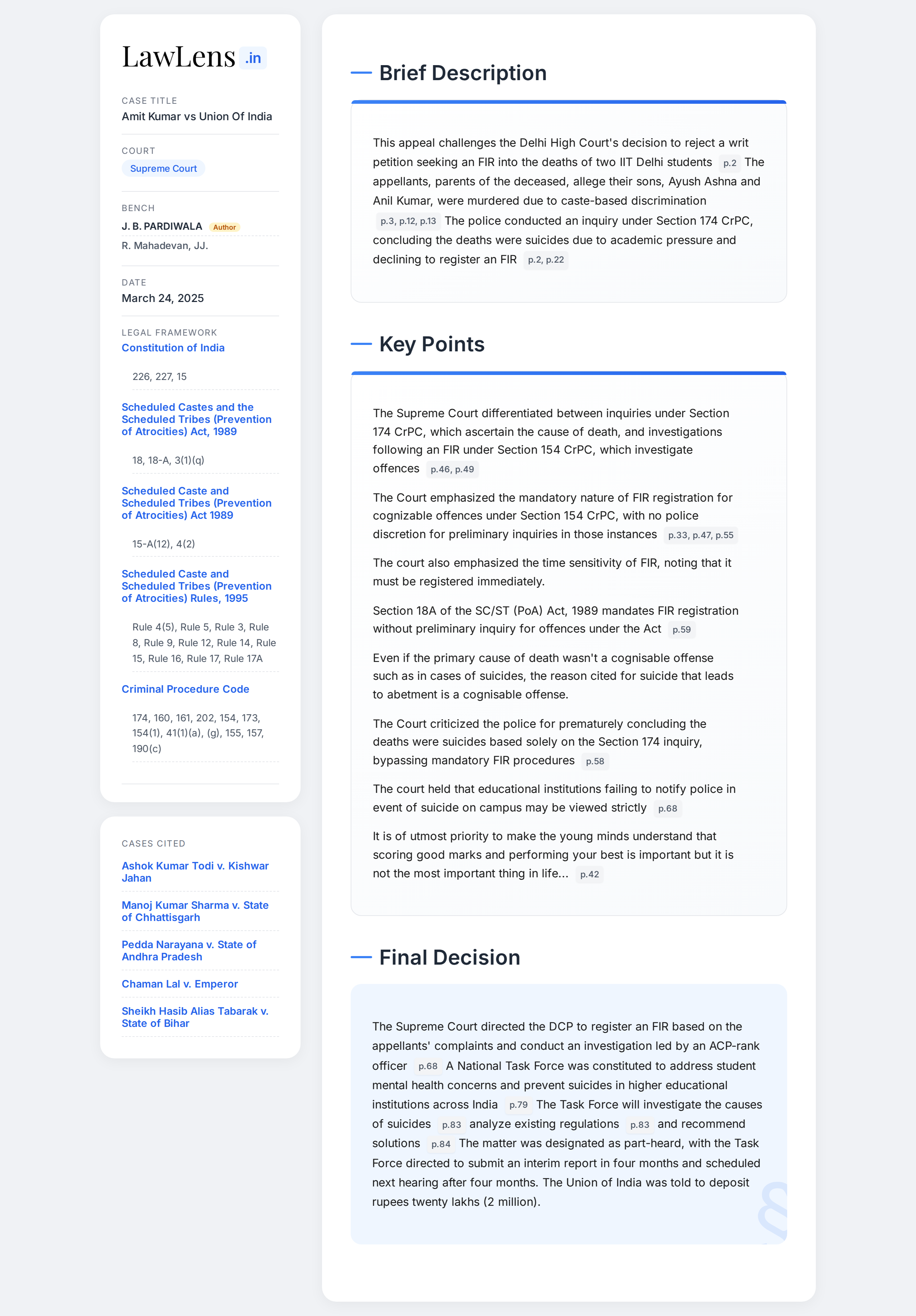 Amit Kumar vs Union Of India 2025 INSC 384 - Student Suicide - Ss. 154 & 174 CrPC