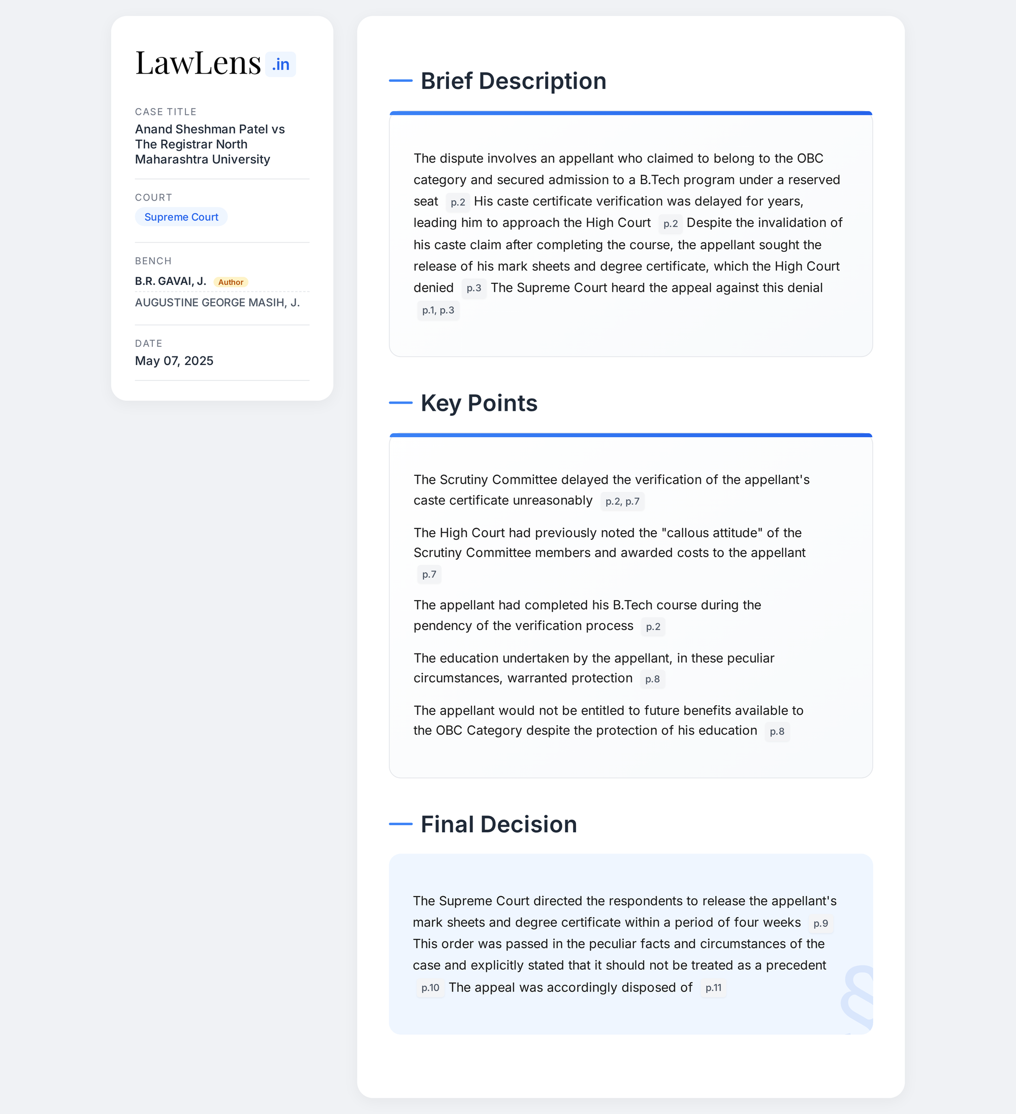 Anand Sheshman Patel vs Registrar North Maharashtra University 2025 INSC 722 - Caste Claim - Admission