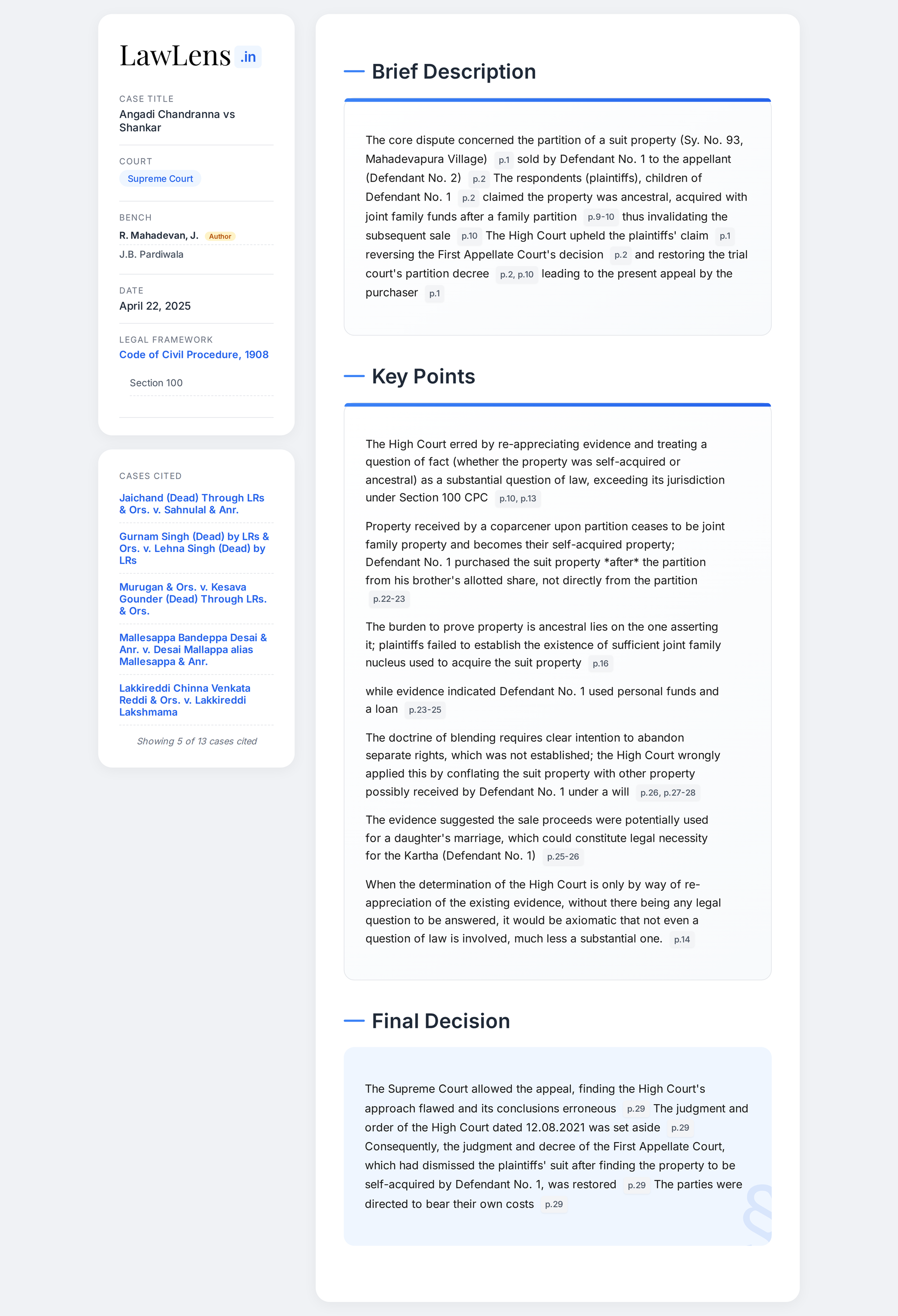 Angadi Chandranna vs Shankar 2025 IINSC 532 - Hindu Law - Joint Family Property - Doctrine Of Blending - Partition - Second Appeal