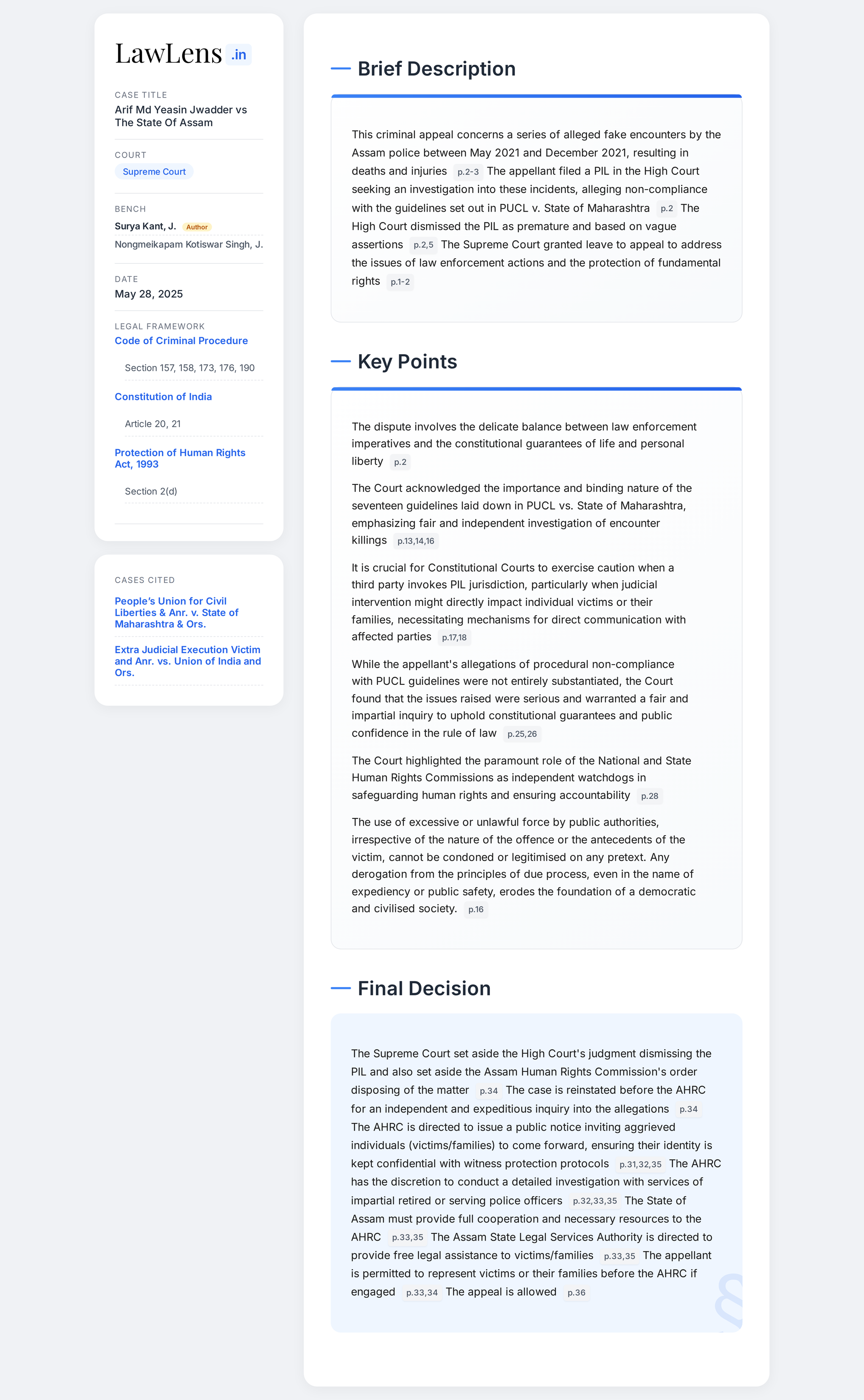 Arif Md. Yeasin Jwadder vs State of Assam 2025 INSC 785 - Fake Encounters