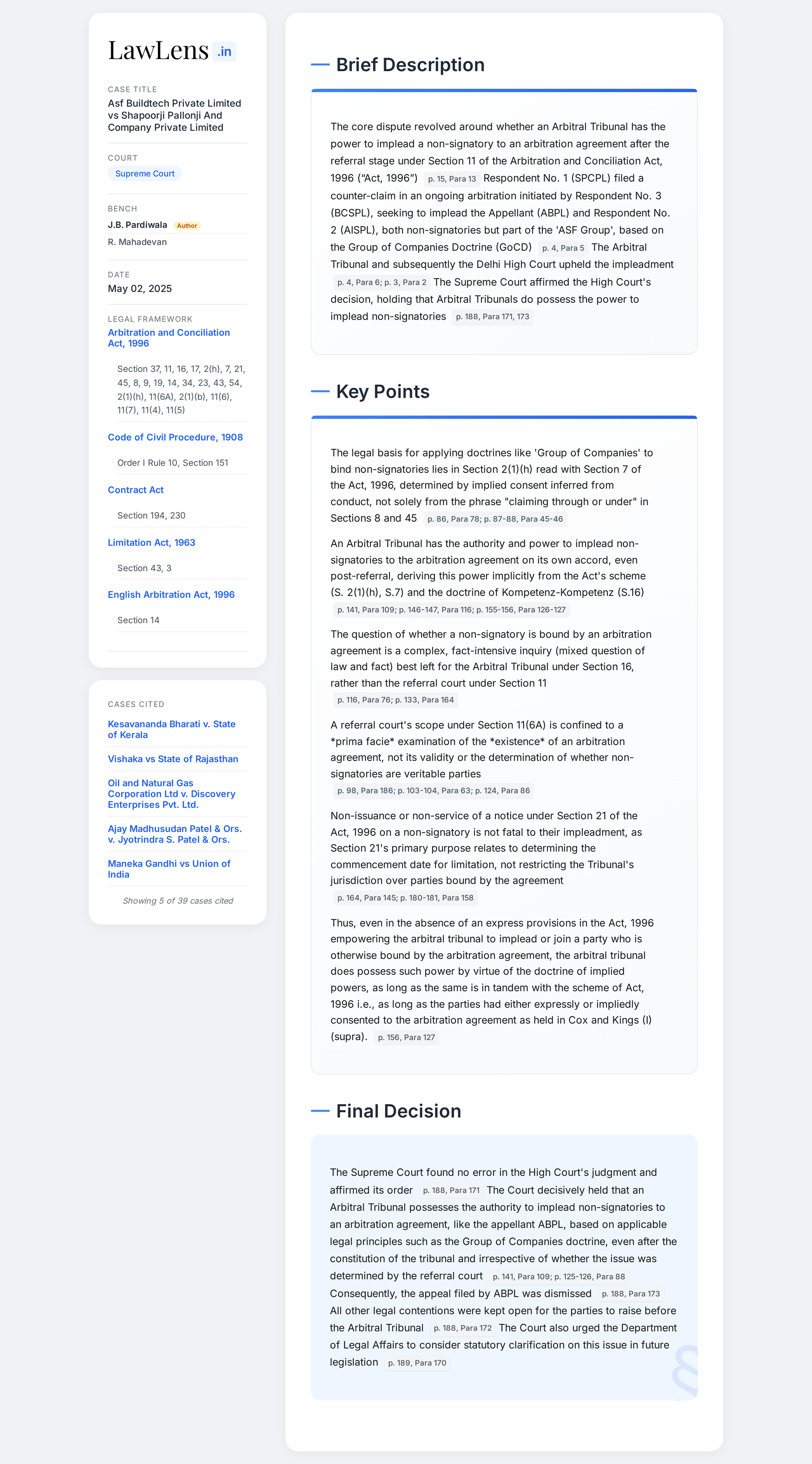 ASF Buildtech Private Limited vs Shapoorji Pallonji And Company Private Limited 2025 INSC 616 - Arbitration Act - Impleading Power Of Arbitral Tribunal
