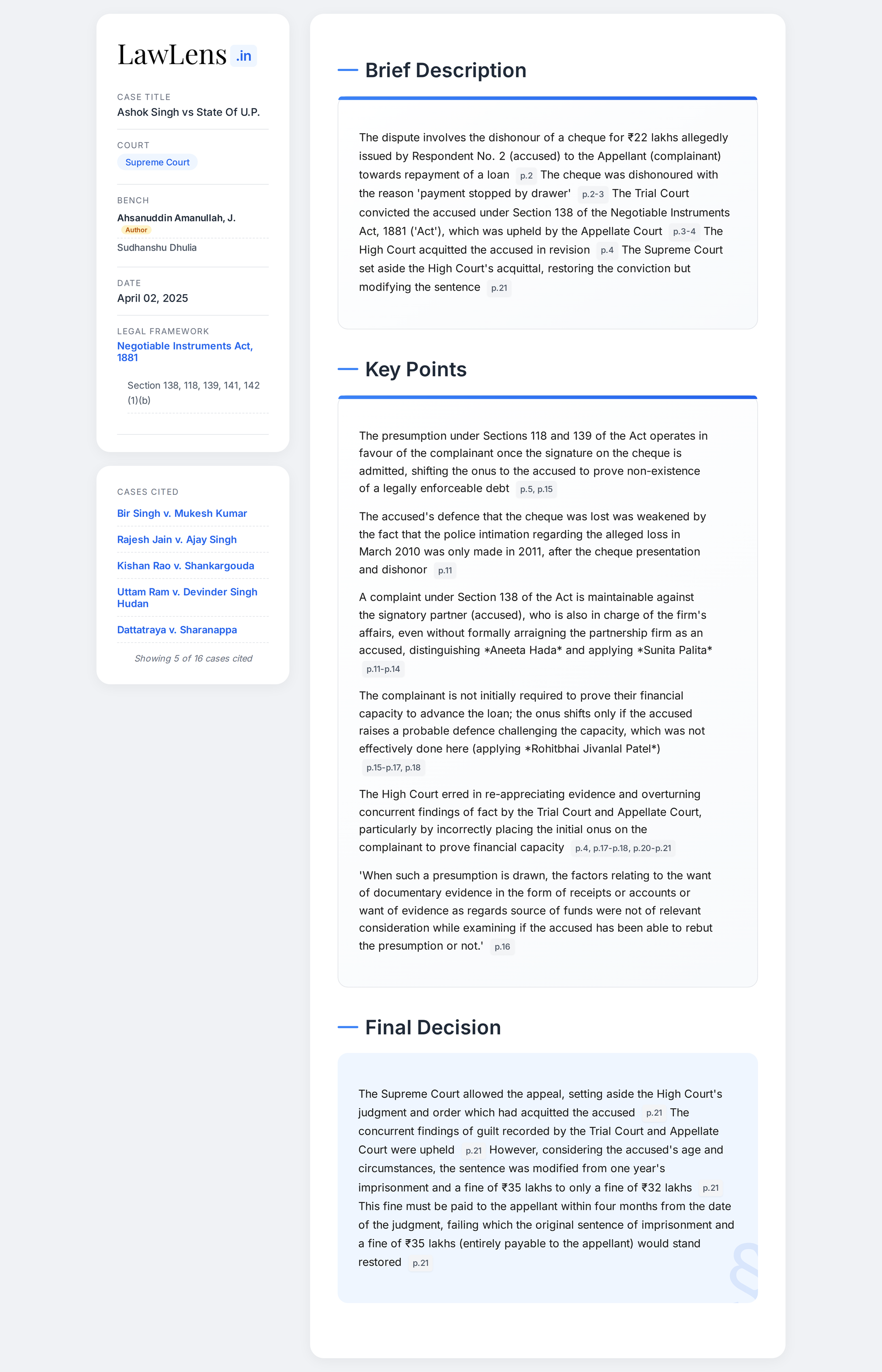 Ashok Singh vs State Of Uttar Pradesh 2025 INSC 427 - S. 138 NI Act - Complainant's Financial Wherewithal
