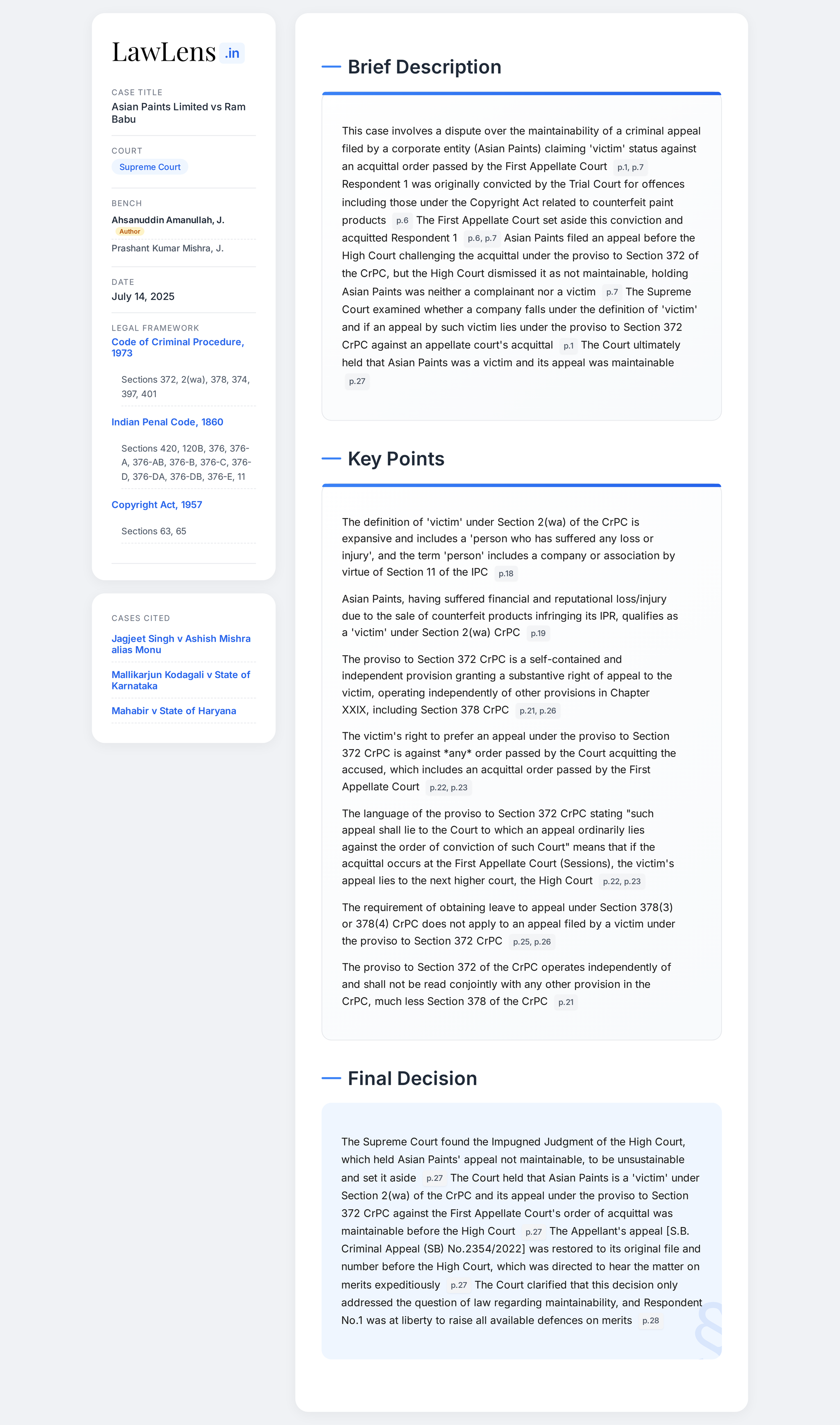 Asian Paints Limited Vs Ram Babu 2025 INSC 828 - S.372 Crpc - Right To Appeal Of Victim
