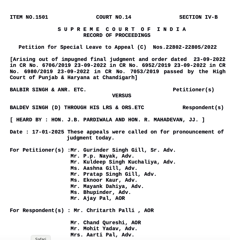 Balbir Singh Vs Baldev Singh (D) 2025 INSC 81 - S 28 SRA - Doctrine Of Merger