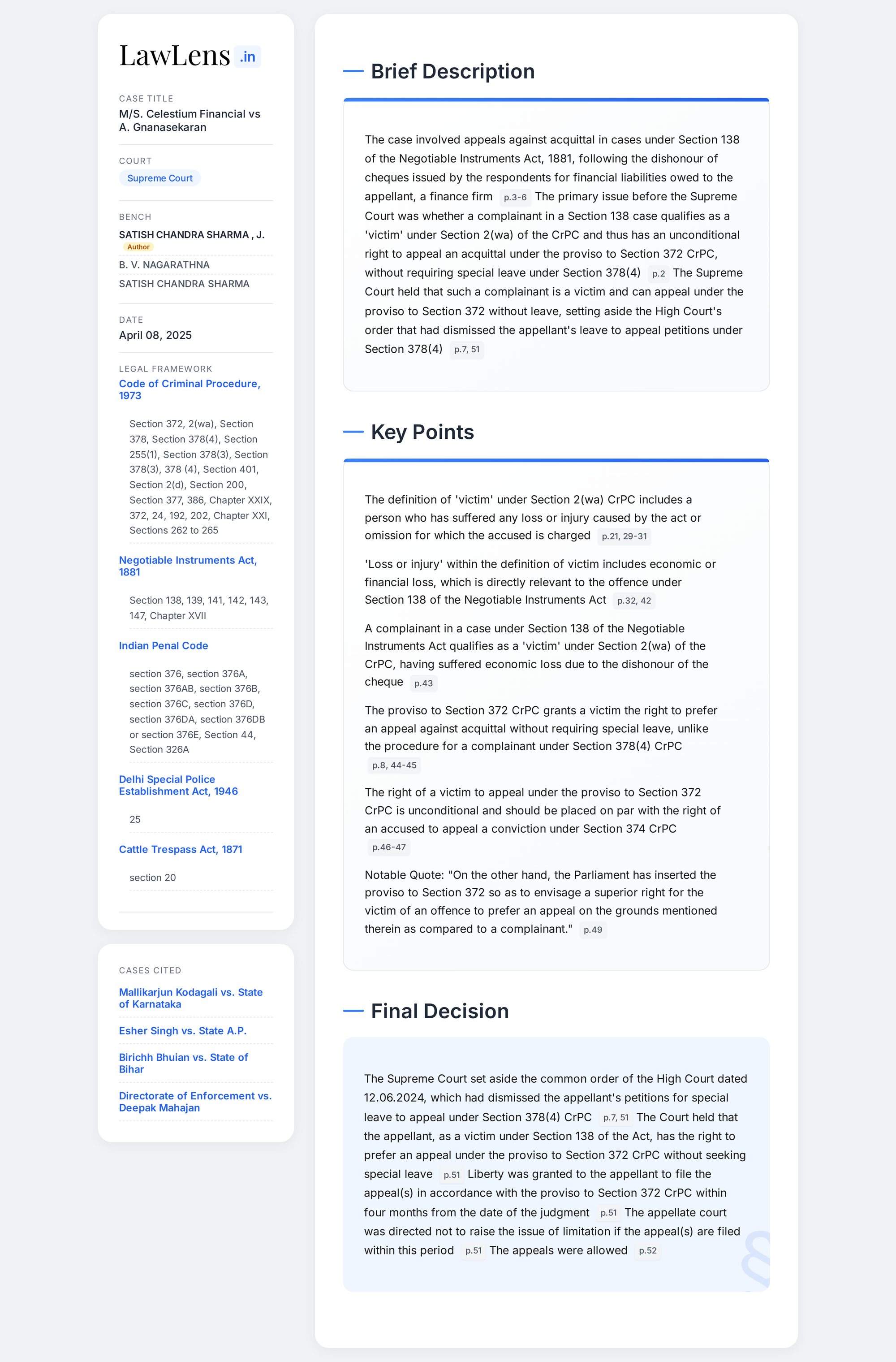 Celestium Financial vs A. Gnanasekaran 2025 INSC 804 - S.372 CrPC - Victim's Right To Appeal - Cheque Bounce Cases