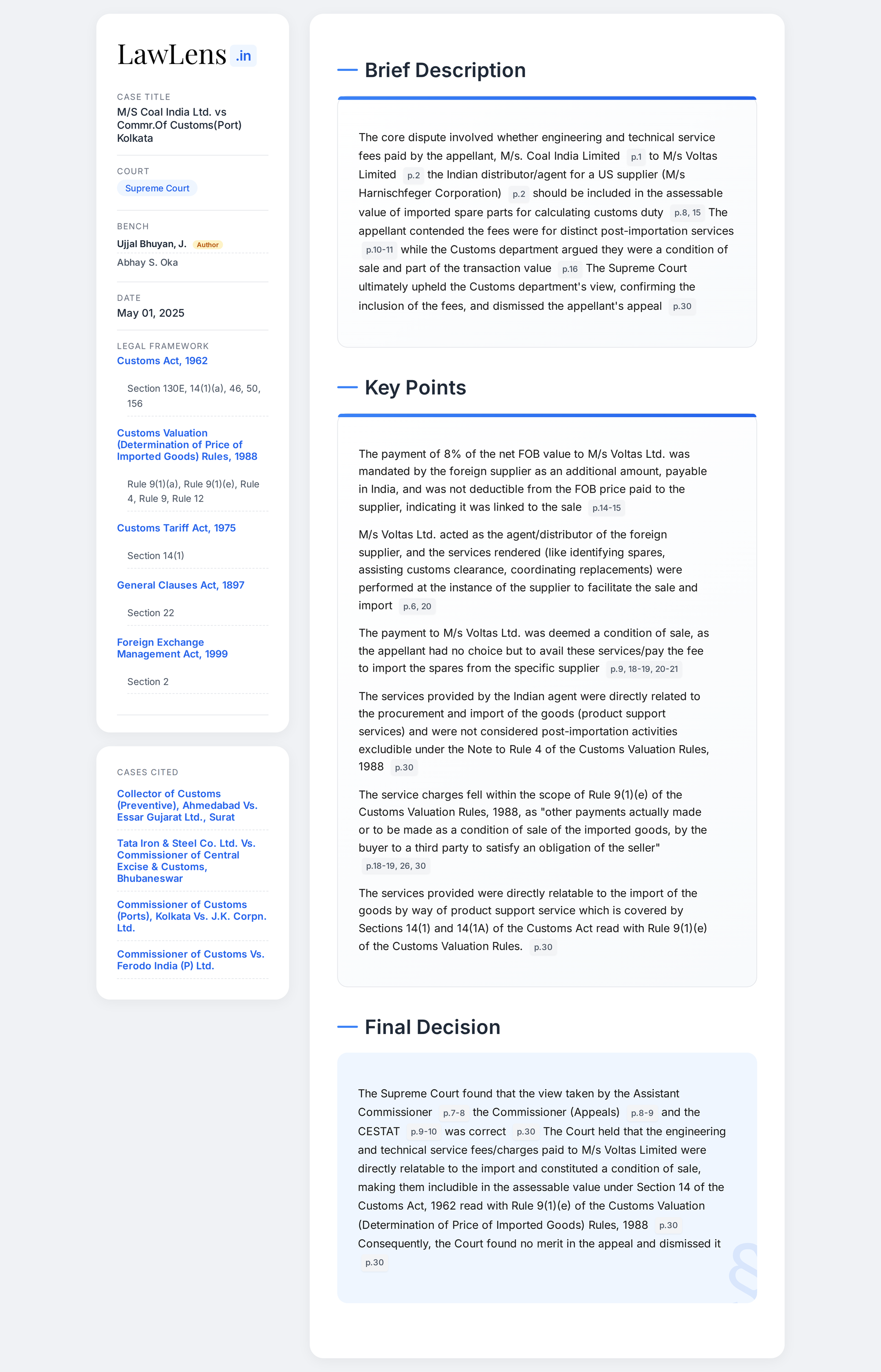 Coal India Limited vs Commissioner Of Customs (Port) 2025 INSC 609 - Customs Act