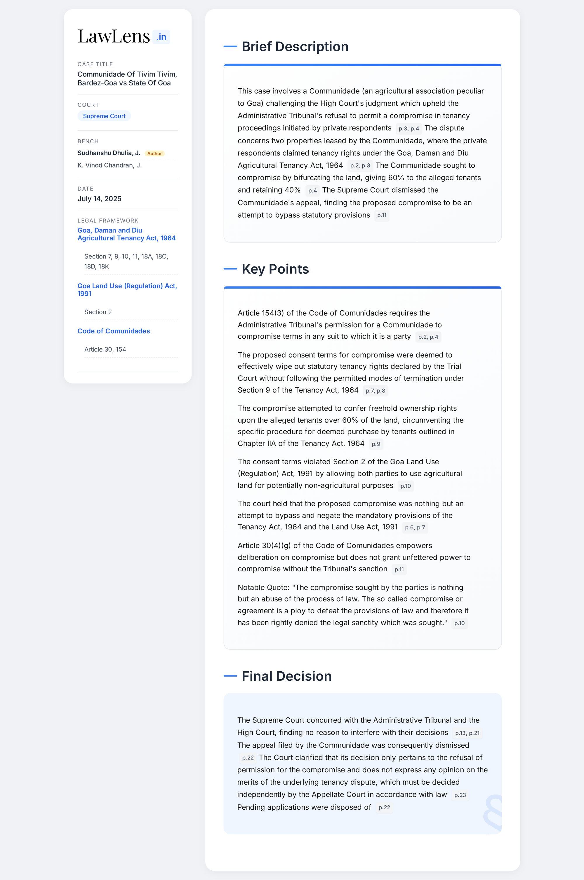 - Case Name: Communidade of Tivim, Tivim, Bardez Goa v. State of Goa & Ors.