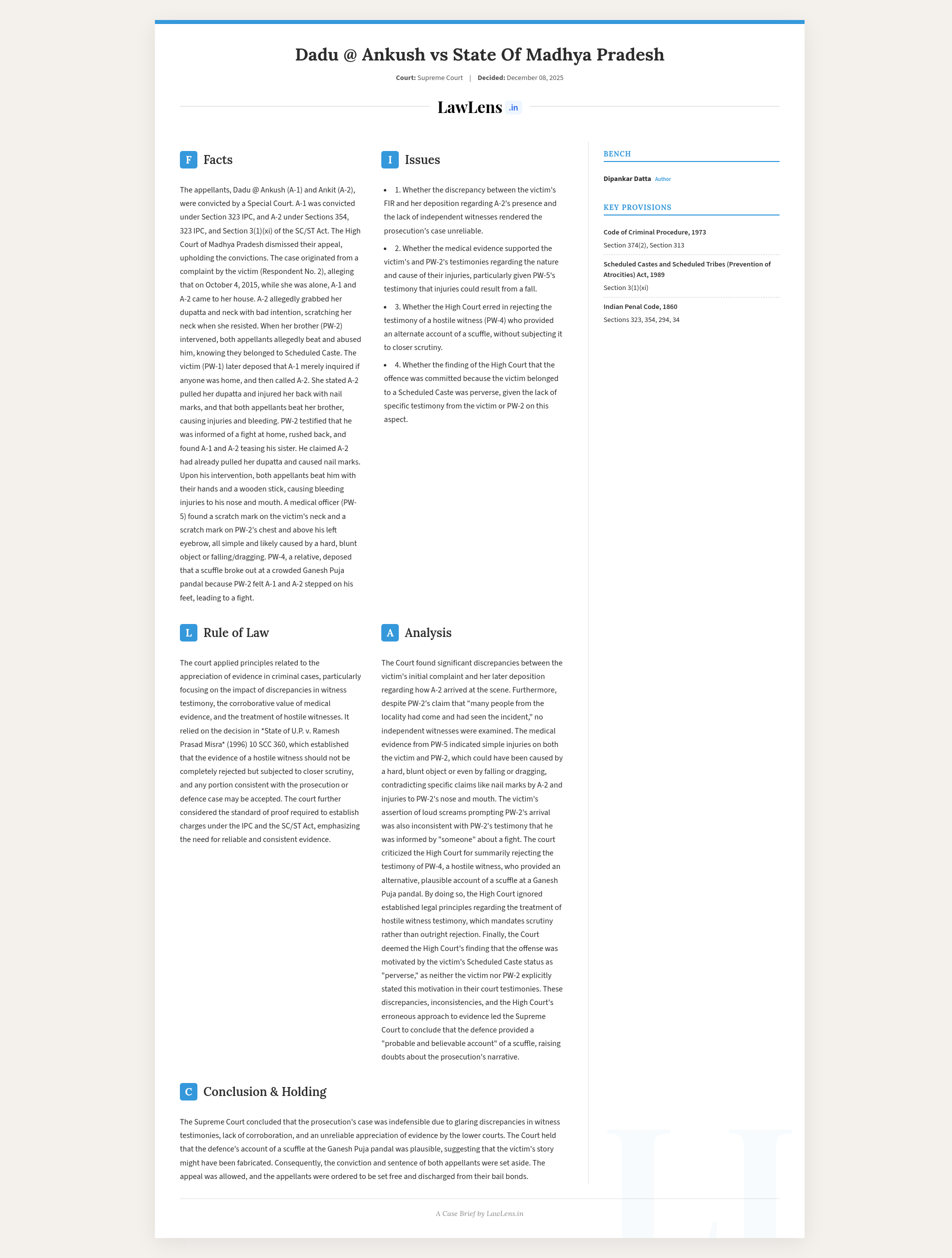 Dadu @ Ankush v. State of Madhya Pradesh 2025 INSC 1395 - Hostile Witness Evidence