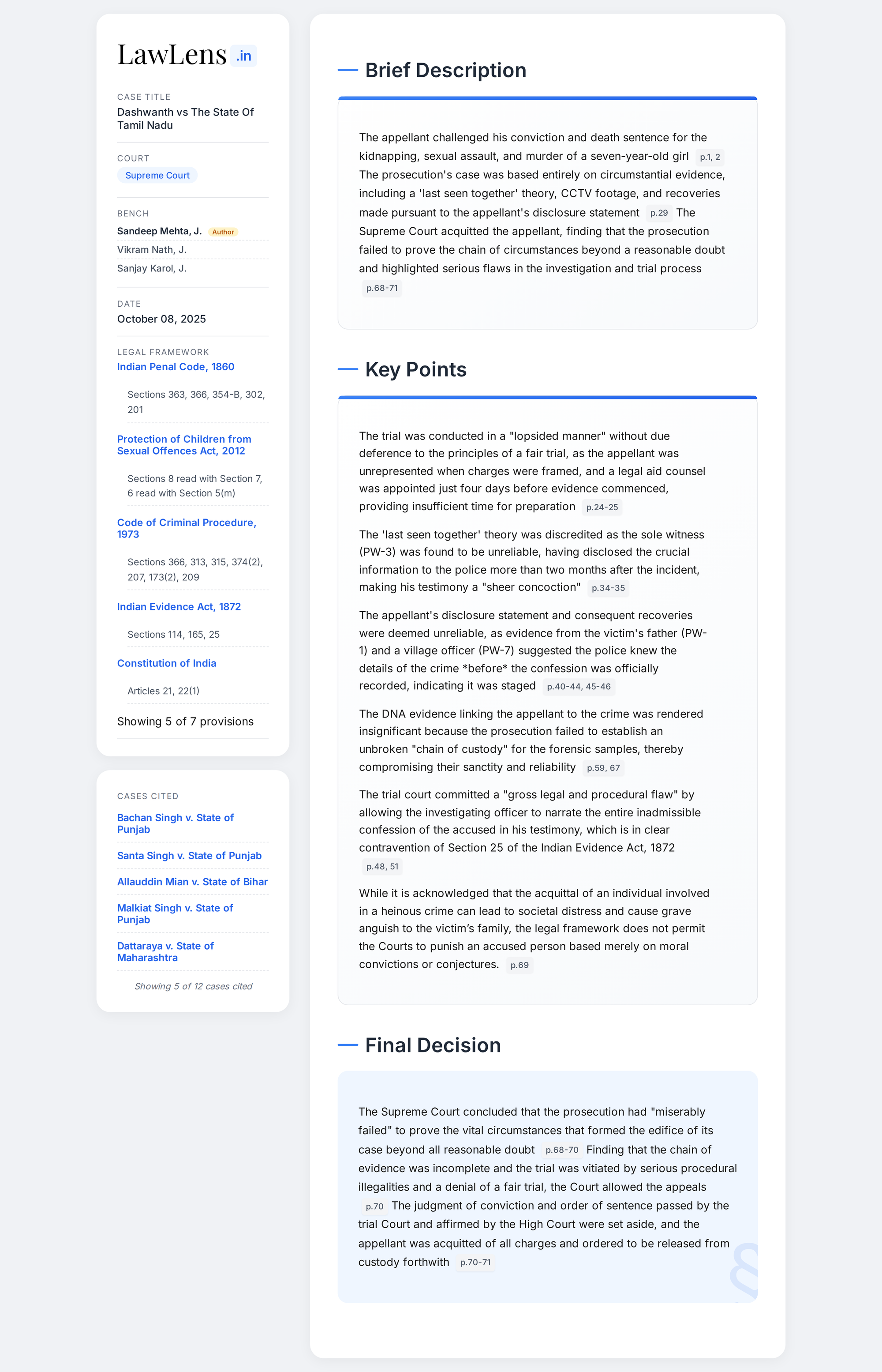 Dashwanth vs The State Of Tamil Nadu 2025 INSC 1203 - Death Sentence Acquittal - Constitutional Rights Of Accused To Defend Himself