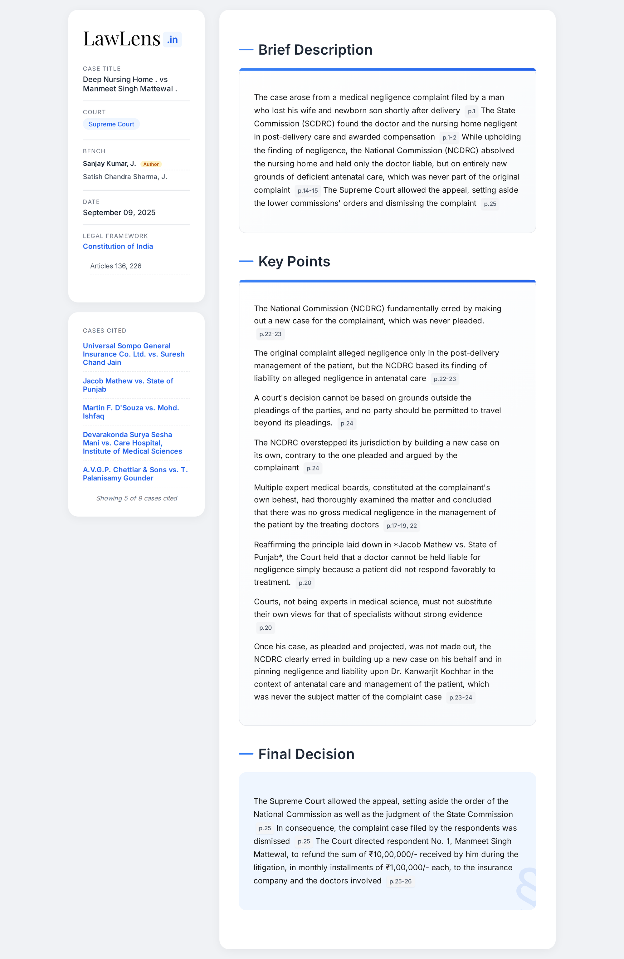 Deep Nursing Home vs Manmeet Singh Mattewal 2025 INSC 1094 - Medical Negligence- Pleadings