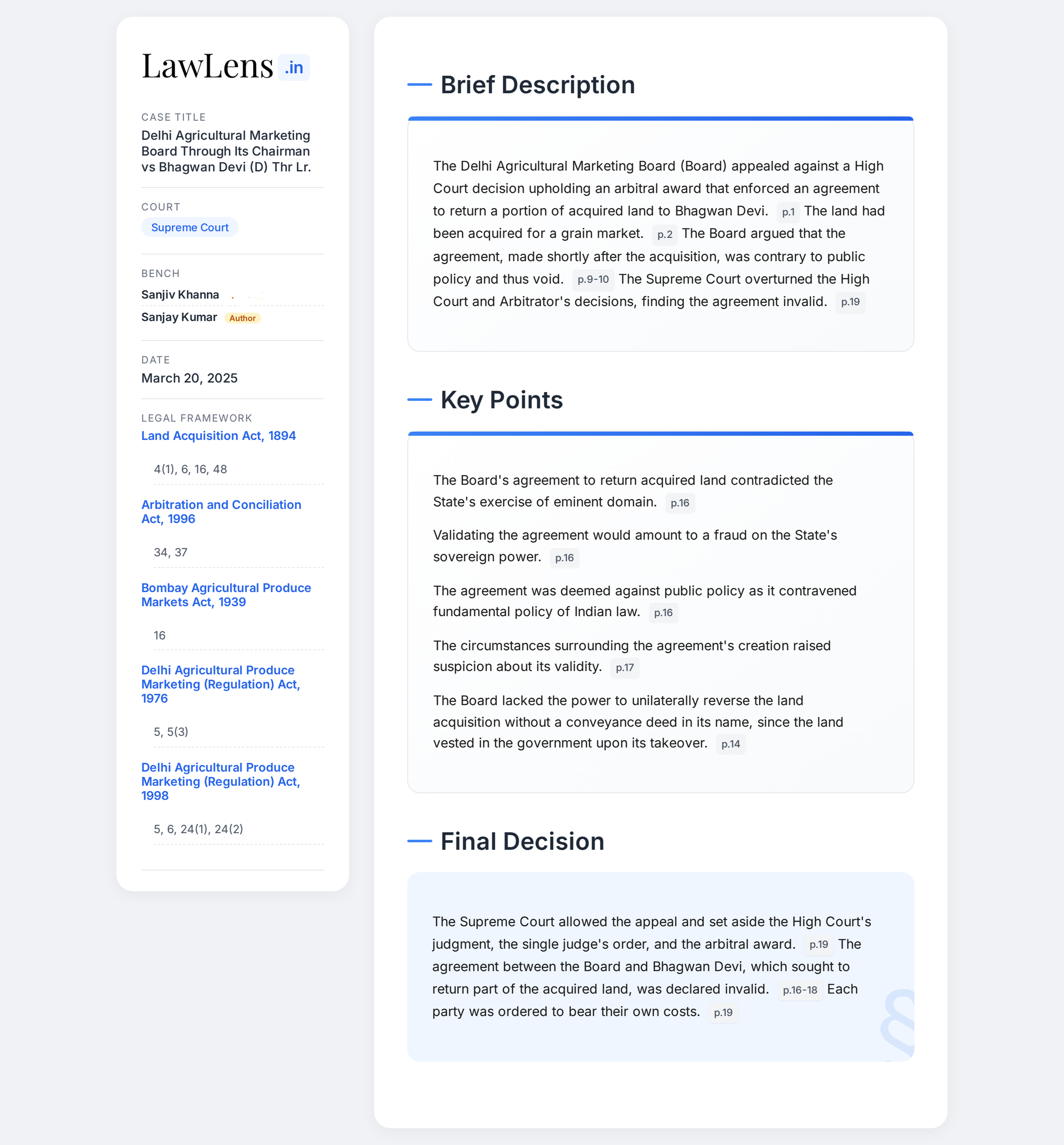 Delhi Agricultural Marketing Board vs Bhagwan Devi (D) 2025 INSC 367 - S. 34 Arbitration Act - Land Acquisition - Private Agreement