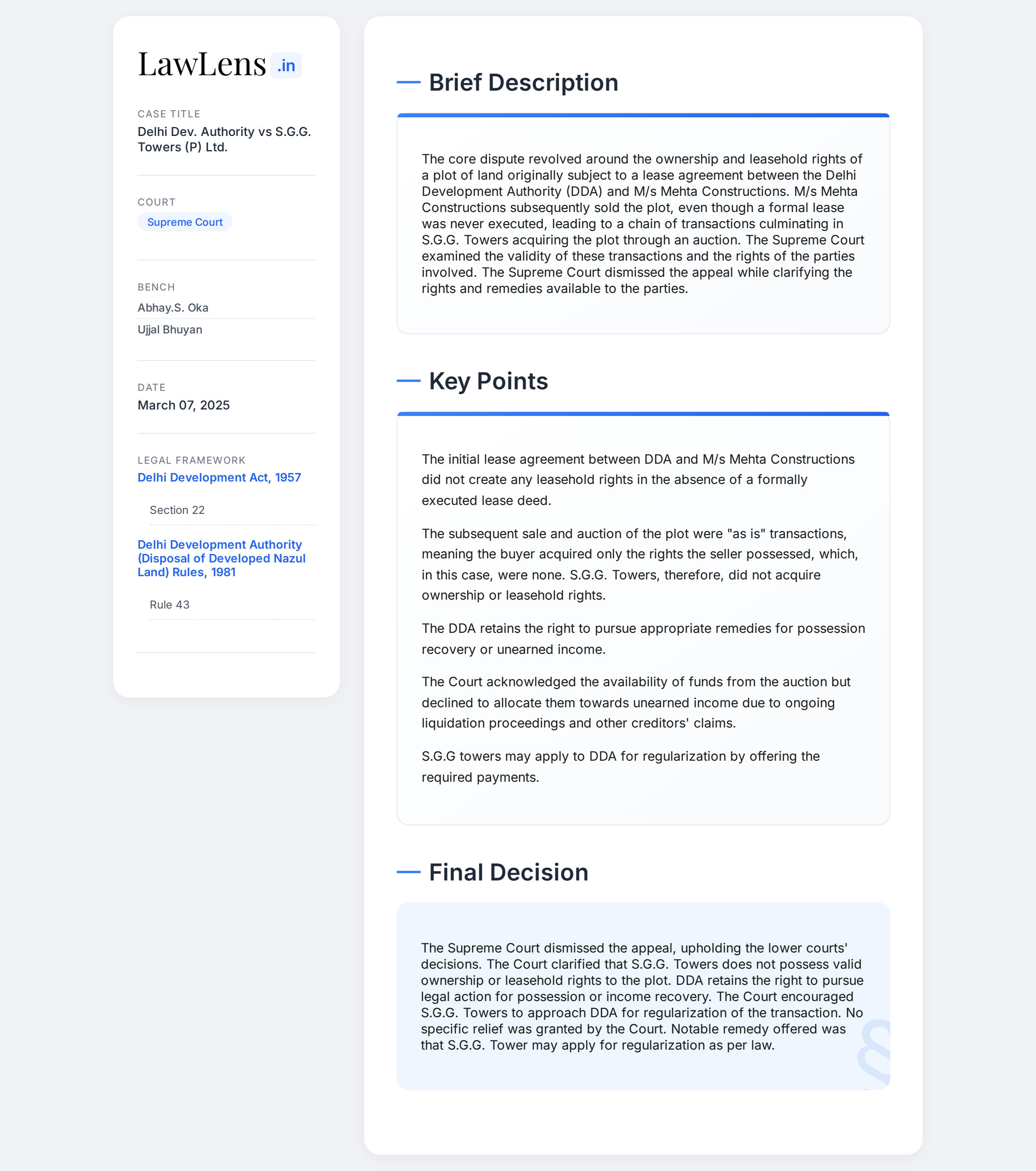 Delhi Development Authority vs S.G.G. Towers (P) Ltd. 2025 INSC 337
