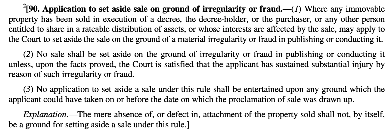 - Order XXI Rule 90(3) (inserted by Act 104 of 1976, effective 01.02.1977)