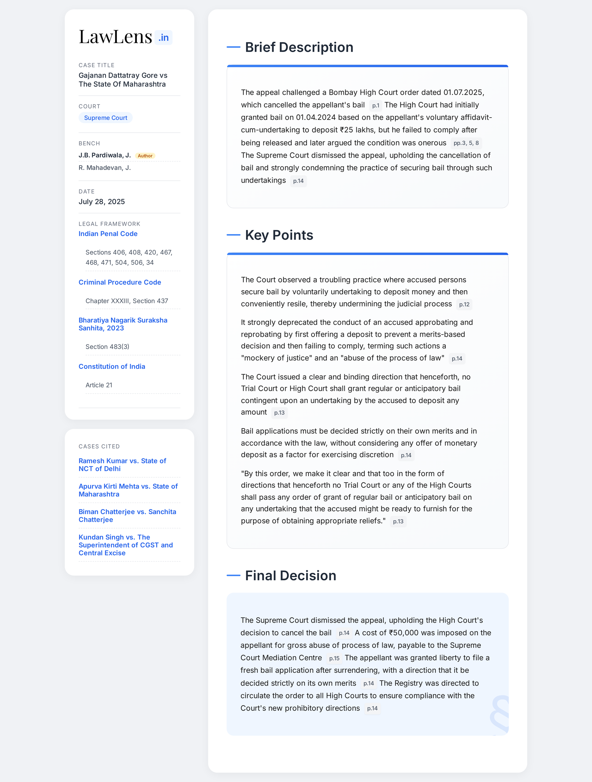 Gajanan Dattatray Gore vs State of Maharashtra 2025 INSC 913 - Bail On Undertaking