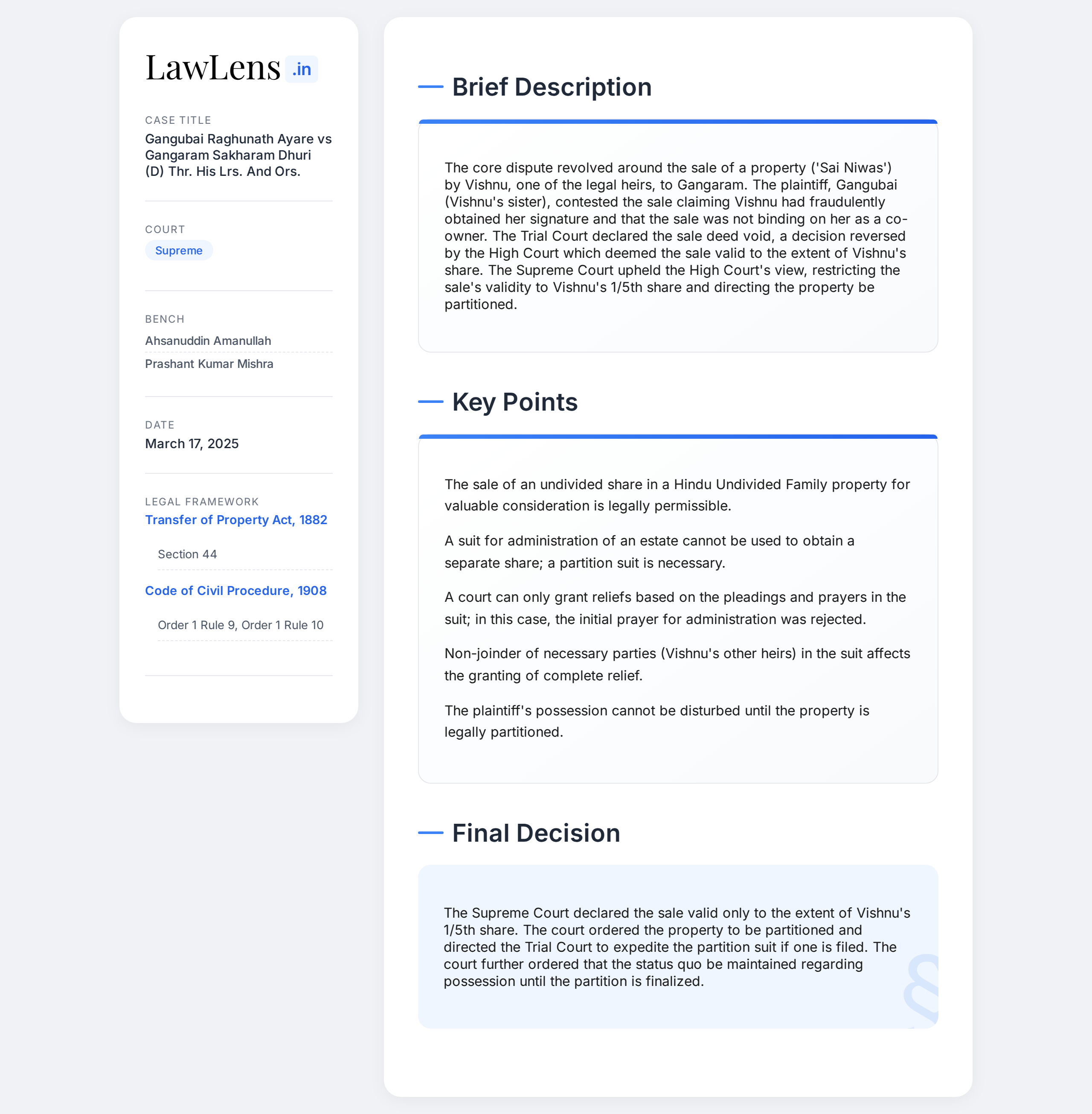 Gangubai Raghunath Ayare vs Gangaram Sakharam Dhuri (D) 2025 INSC 355 - Order I Rule 9 - Necessary Party
