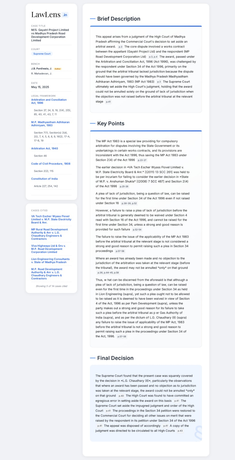 Gayatri Project Limited vs Madhya Pradesh Road Development Corporation Limited 2025 INSC 698 - S.34 Arbitration Act - Lack Of Jurisdiction