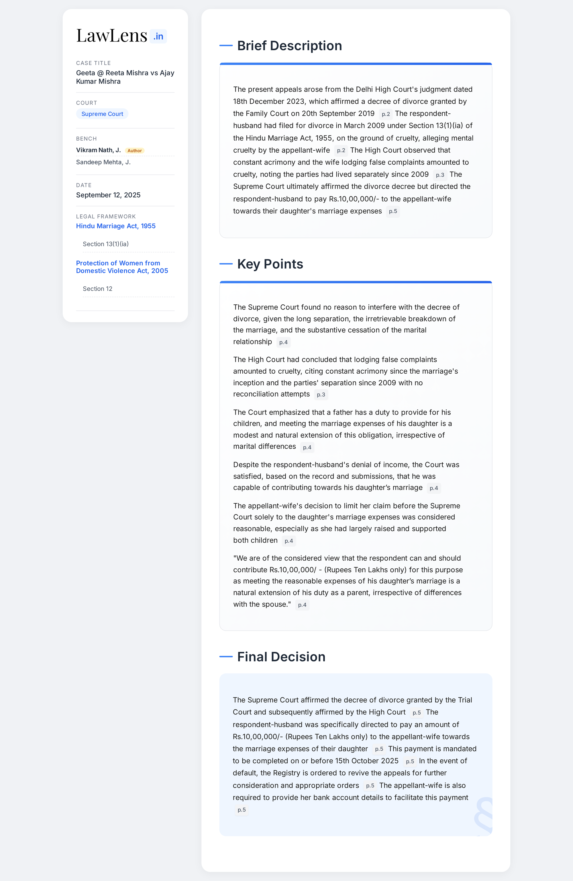 Geeta @ Reeta Mishra Vs. Ajay Kumar Mishra 2025 INSC 1102 - Father's Duty - Daughter’s Marriage Expenses