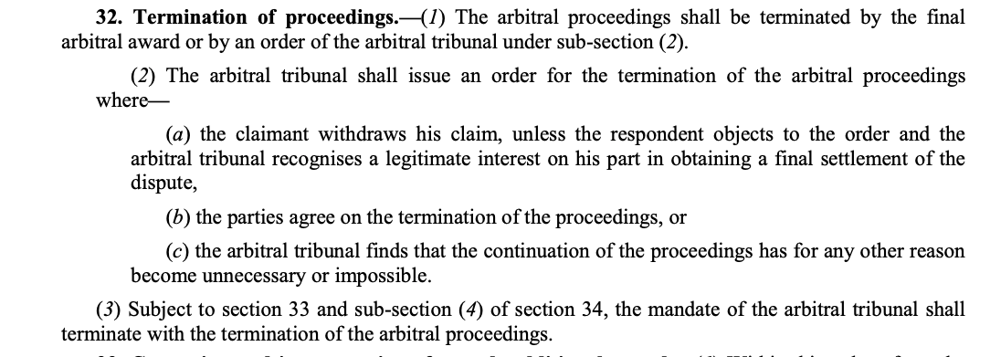 #SupremeCourt held that the power of the arbitral tribunal to pass an order to terminate the proceedings under the scheme of the Act, lies only in Section 32(2) of the Arbitration and Conciliation Act. https://t.co/KedMUDORwA pic.twitter.com/IZgMZtdlvS