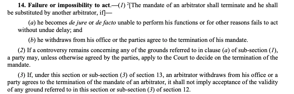 Arbitration and Conciliation Act 1996 - Section 14- The expression “the Court to decide on the termination of the mandate” should be given an expansive meaning to include any challenge to an order for termination of proceedings simpliciter- The termination of proceedings in essence results in the arbitrator being absolved of its duty to administer the arbitration. (Para 297)