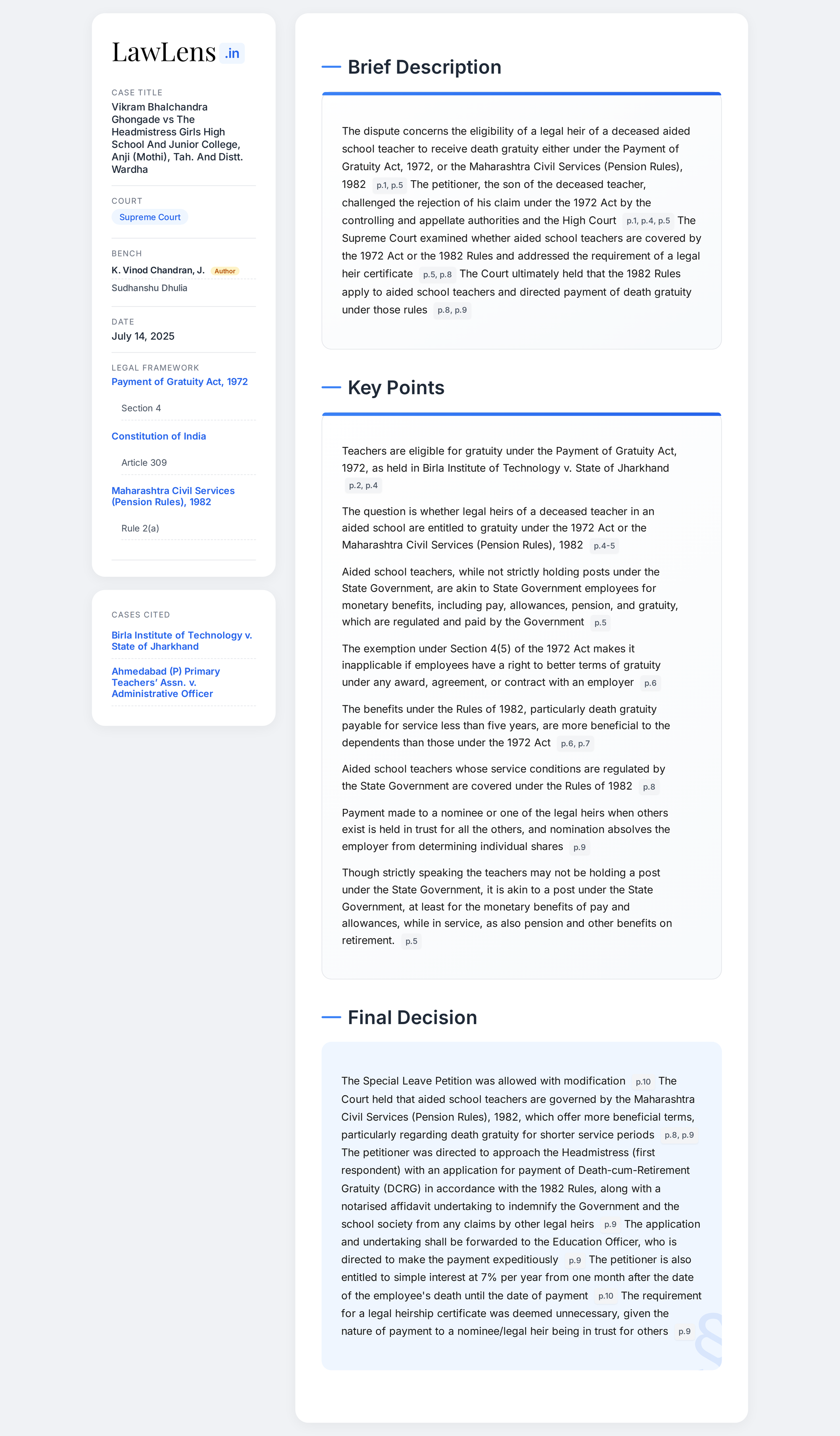 Vikram Bhalchandra Ghongade Vs Headmistress Girls High School And Junior College 2025 INSC 824 - Service Law - Aided School Teachers