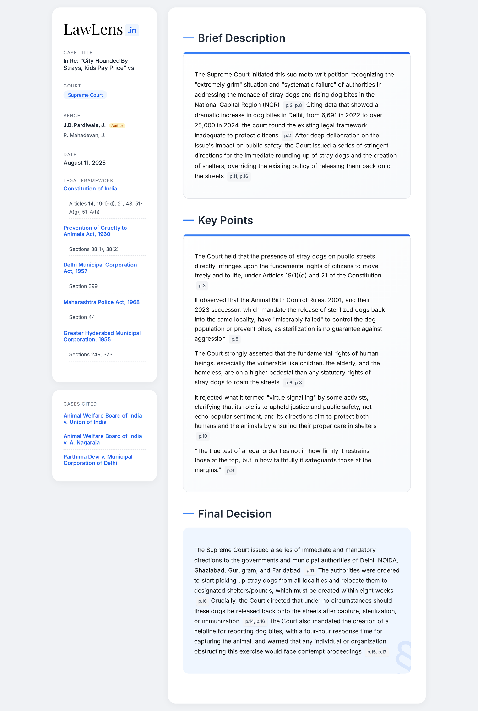 In Re: “City Hounded By Strays, Kids Pay Price” 2025 INSC 977 - Stray Dogs Menace - Directions Issued