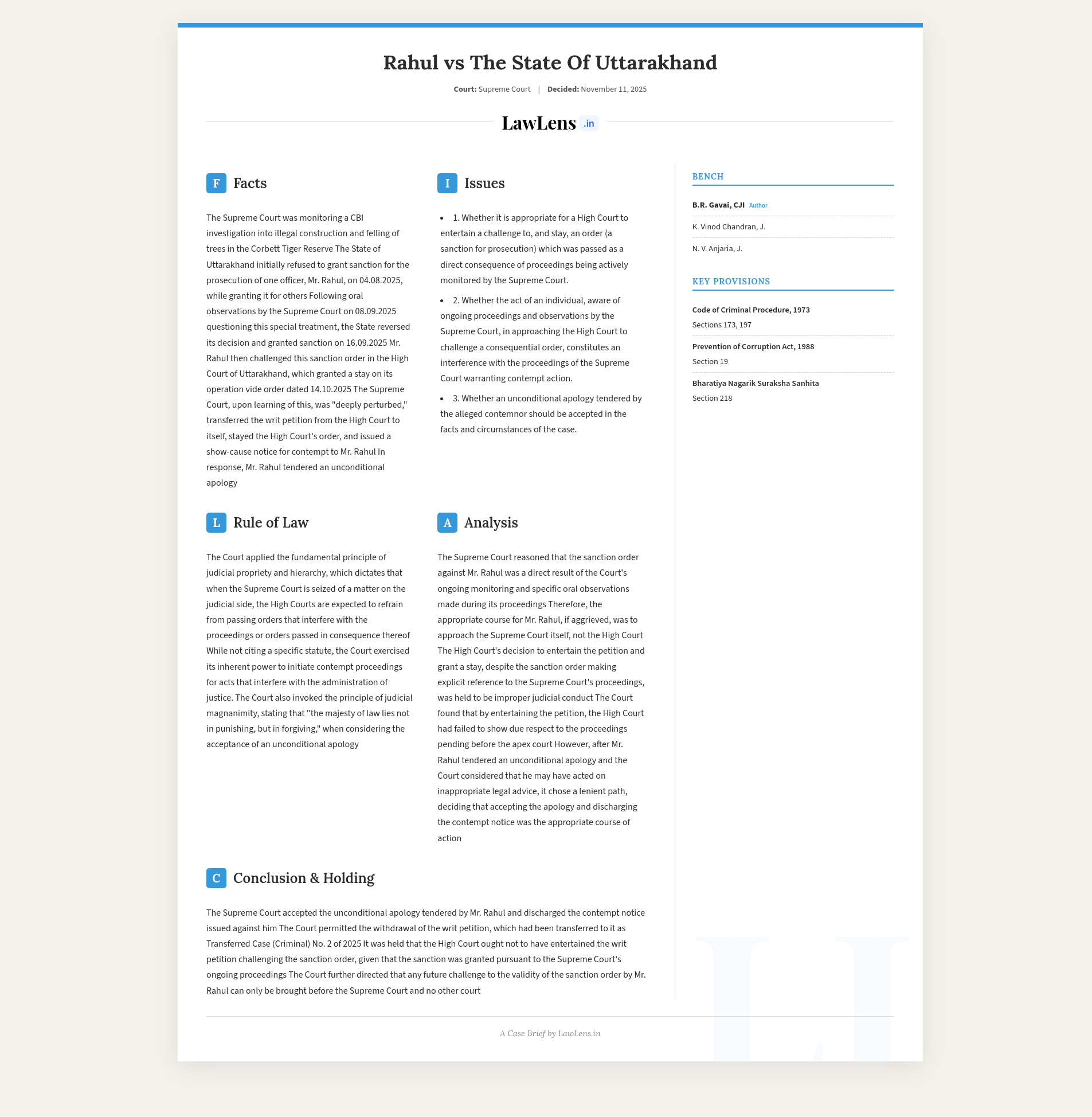 Rahul vs The State Of Uttarakhand; 2025 INSC 1344; Coram: B.R.