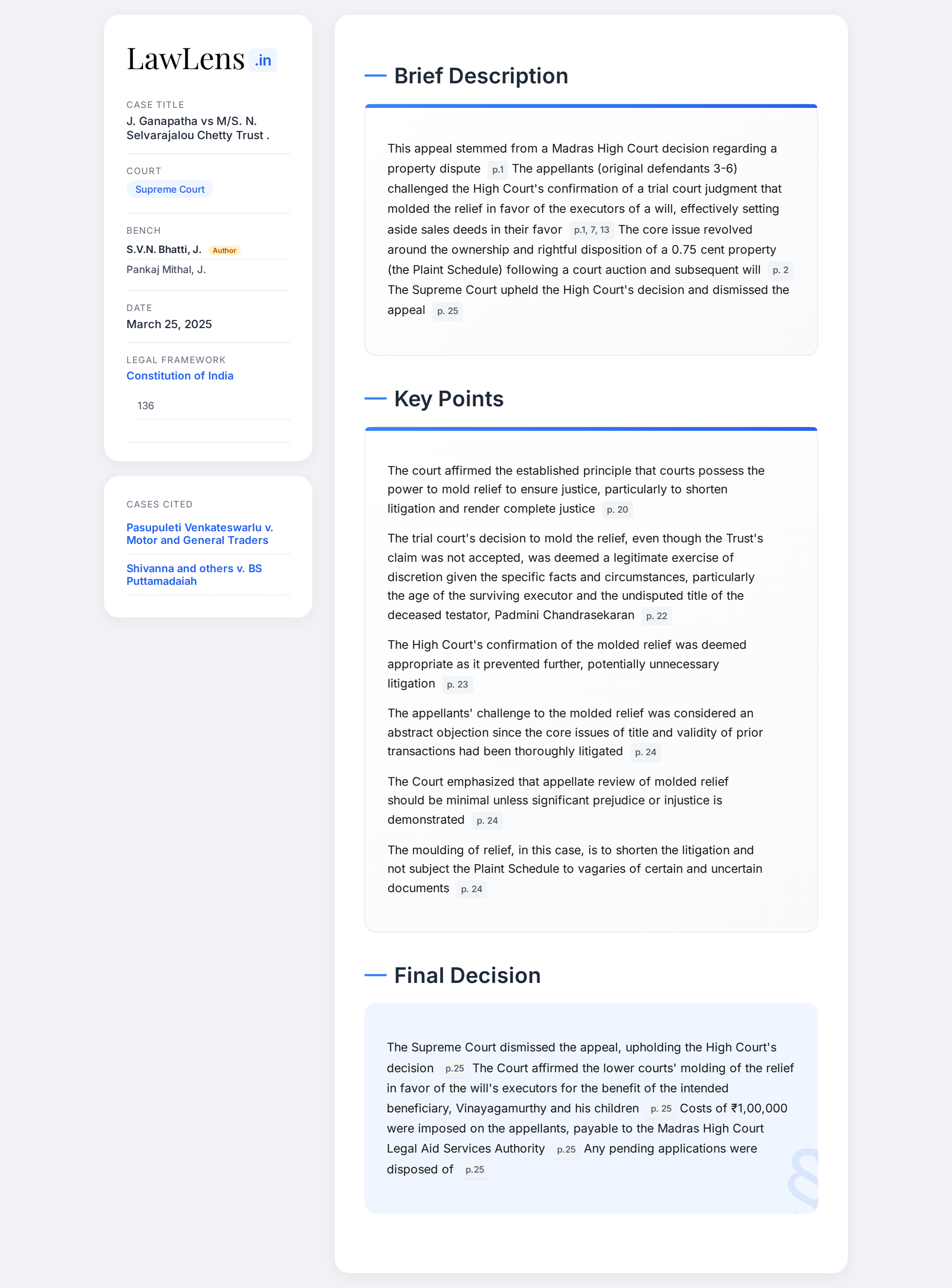 J. Ganapatha Vs N. Selvarajalou Chetty Trust 2025 INSC 395 - Moulding Of Relief