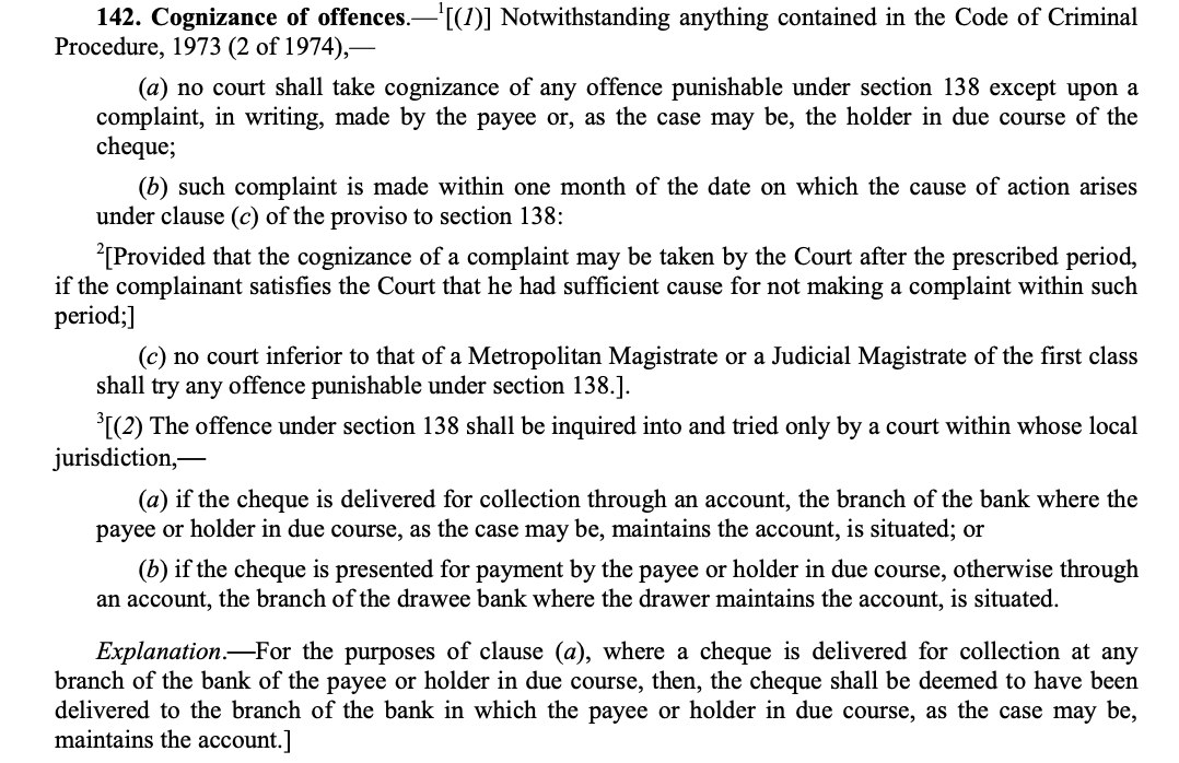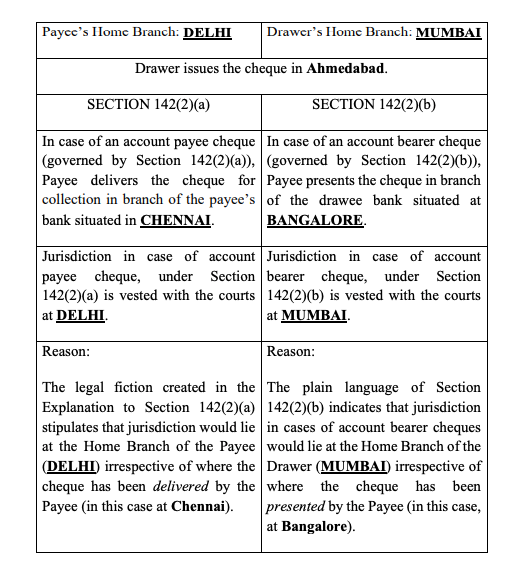 Negotiable Instruments Act 1881 - Section 142(2)(b)- Even if a cheque is dishonoured elsewhere, the jurisdiction for trial of the complaint under Section 138 would lie with the court within whose local jurisdiction the branch of the drawee bank in which the drawer maintains the account, is situated. (Para 55)
