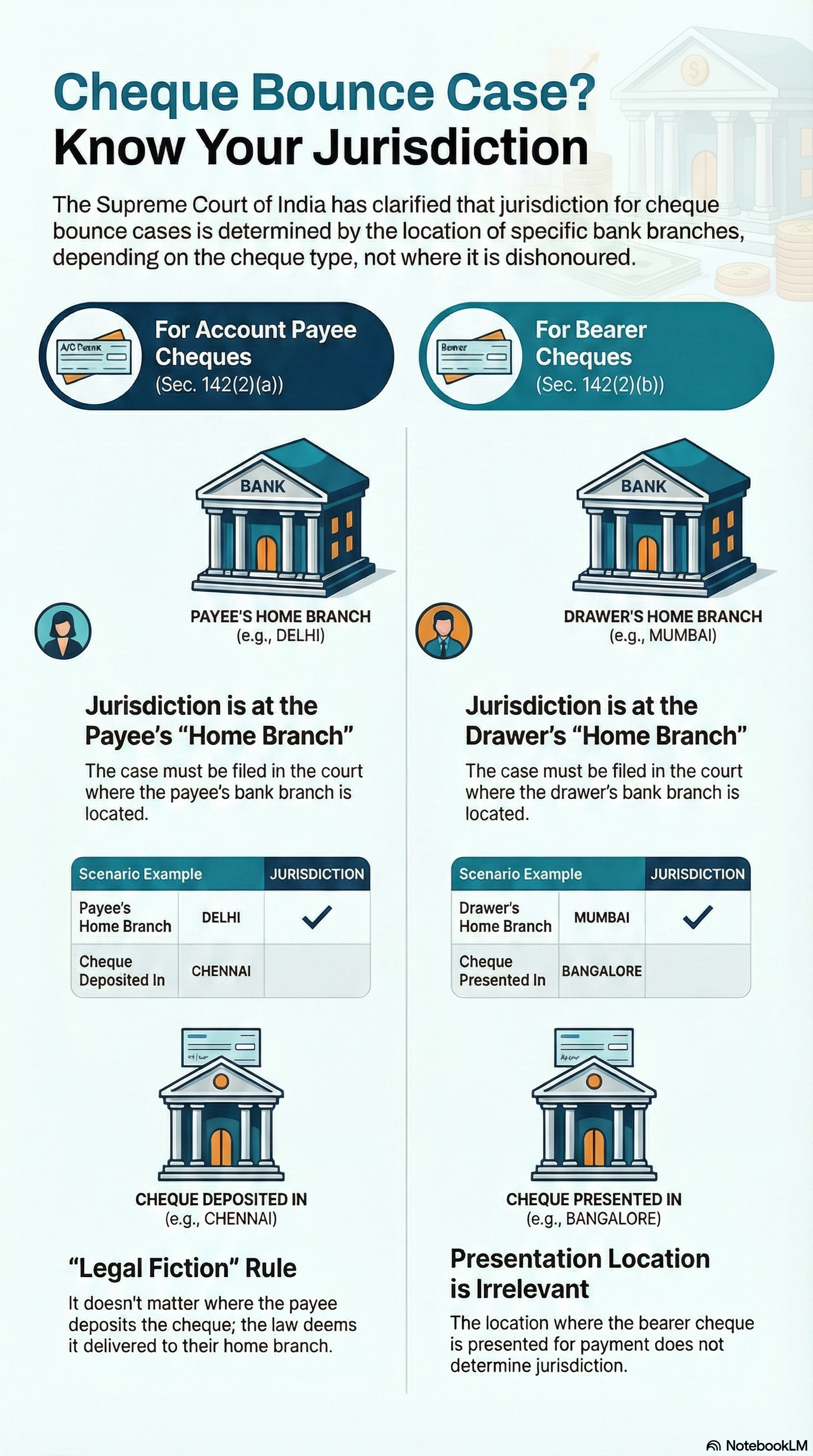 #SupremeCourt holds that the jurisdiction to try a cheque bounce complaint in respect of an account payee cheque, is vested in the court within whose local jurisdiction the payee’s home branch is situated. https://t.co/blWltclejQ pic.twitter.com/xfnoUnDBoT