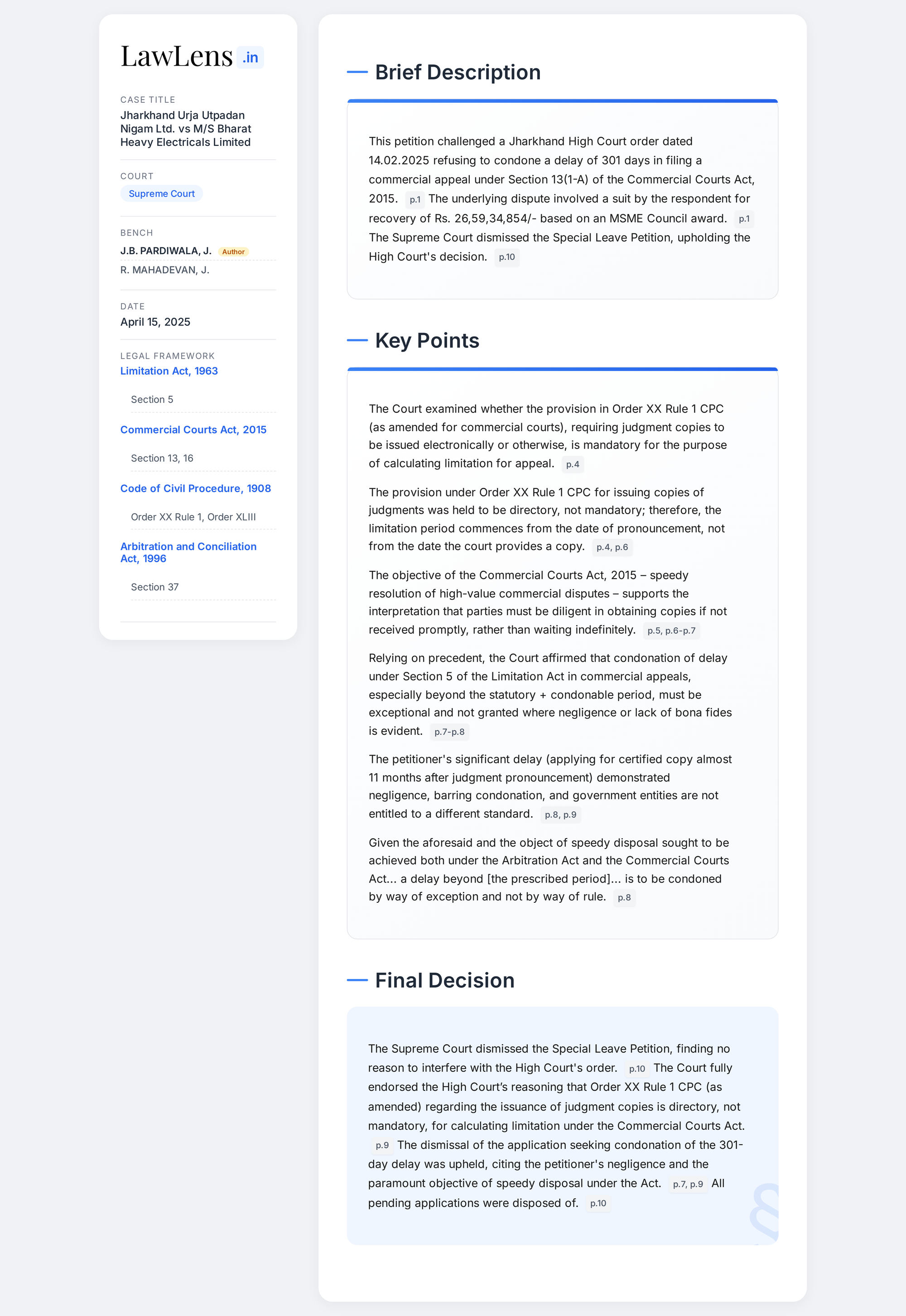 Jharkhand Urja Utpadan Nigam Ltd. vs Bharat Heavy Electricals Limited 2025 INSC 533 - Order XX Rule 1 CPC - Commercial Courts Act