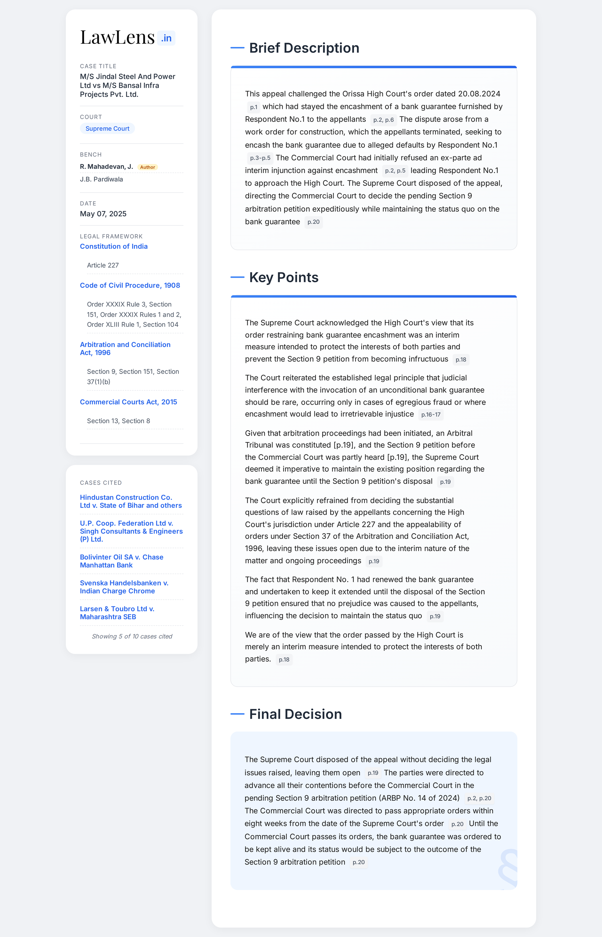 Jindal Steel And Power Ltd. vs Bansal Infra Projects Pvt. Ltd. 2025 INSC 640 - Bank Guaranteee