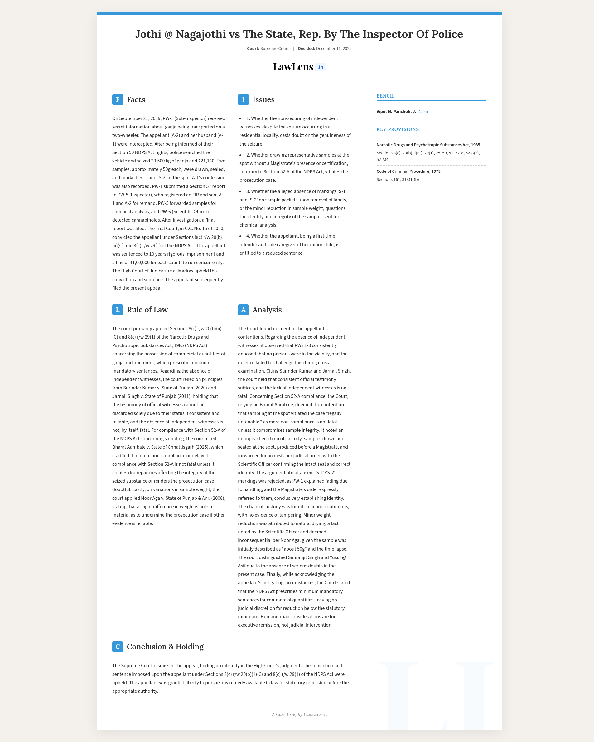 - Case name: Jothi @ Nagajothi v. The State, Rep. by the Inspector of Police