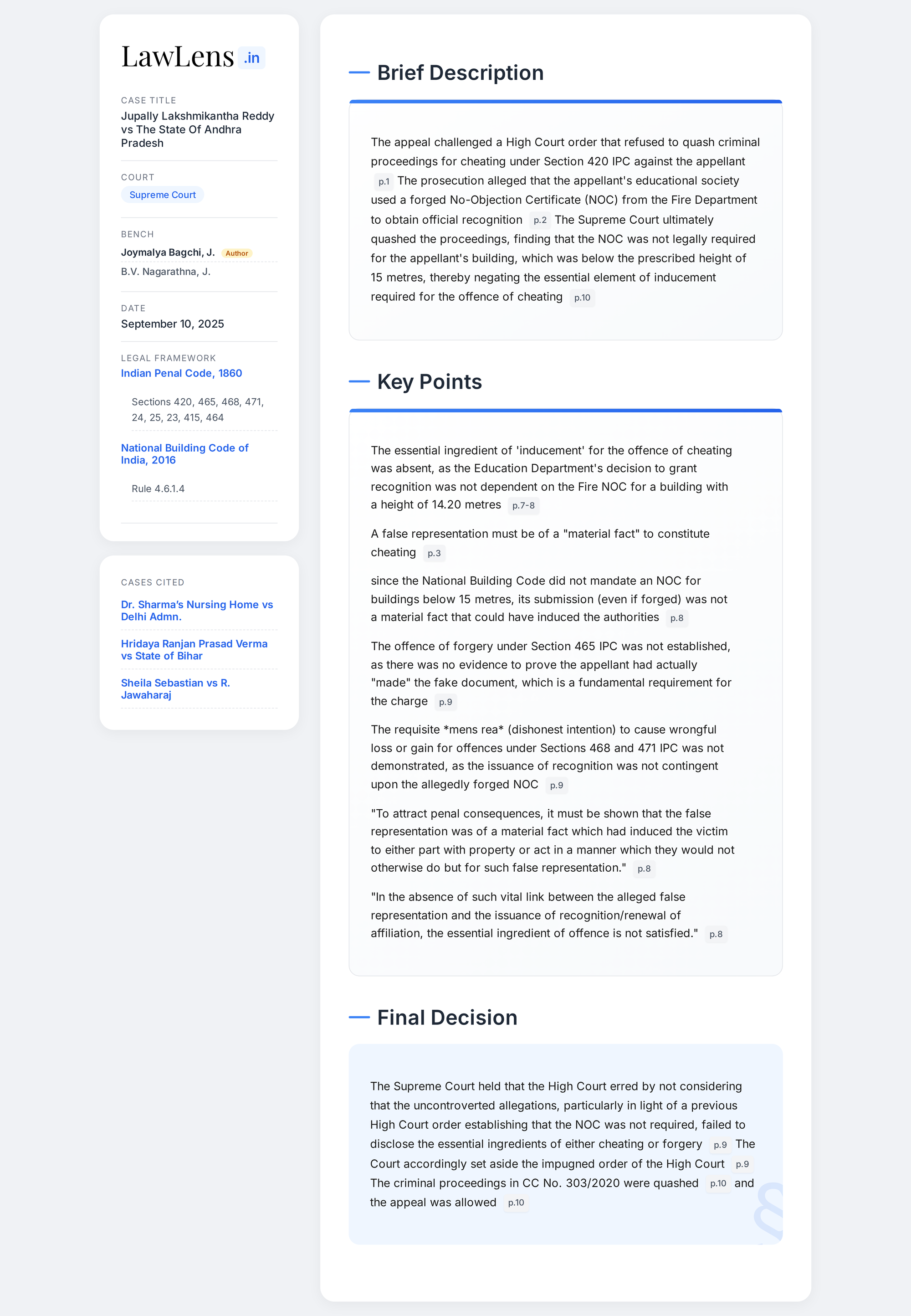 Jupally Lakshmikantha Reddy v. State of Andhra Pradesh 2025 INSC 1096 - IPC - Cheating - Forgery