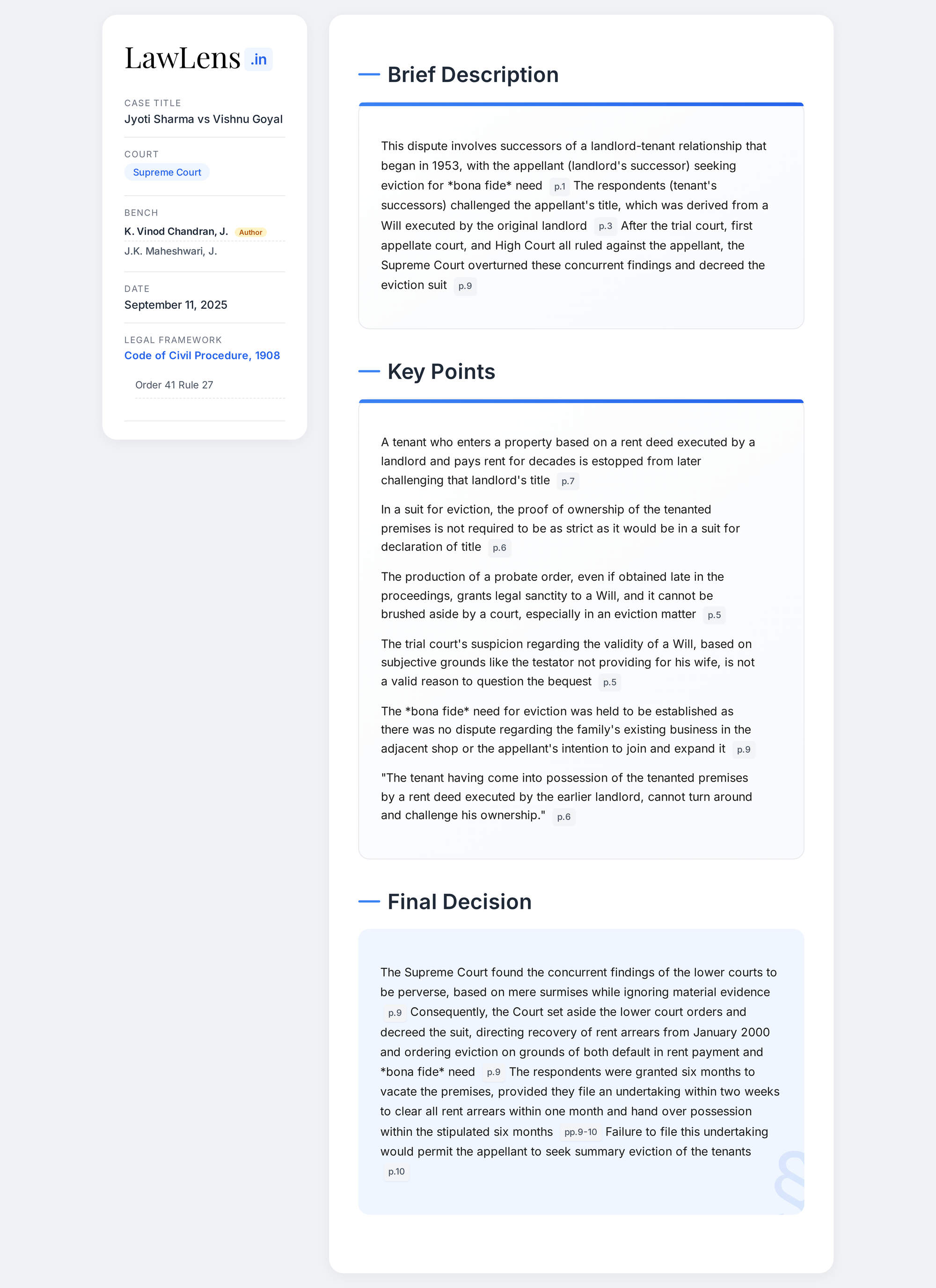 Jyoti Sharma v. Vishnu Goyal 2025 INSC 1099 - Eviction Suit - Will