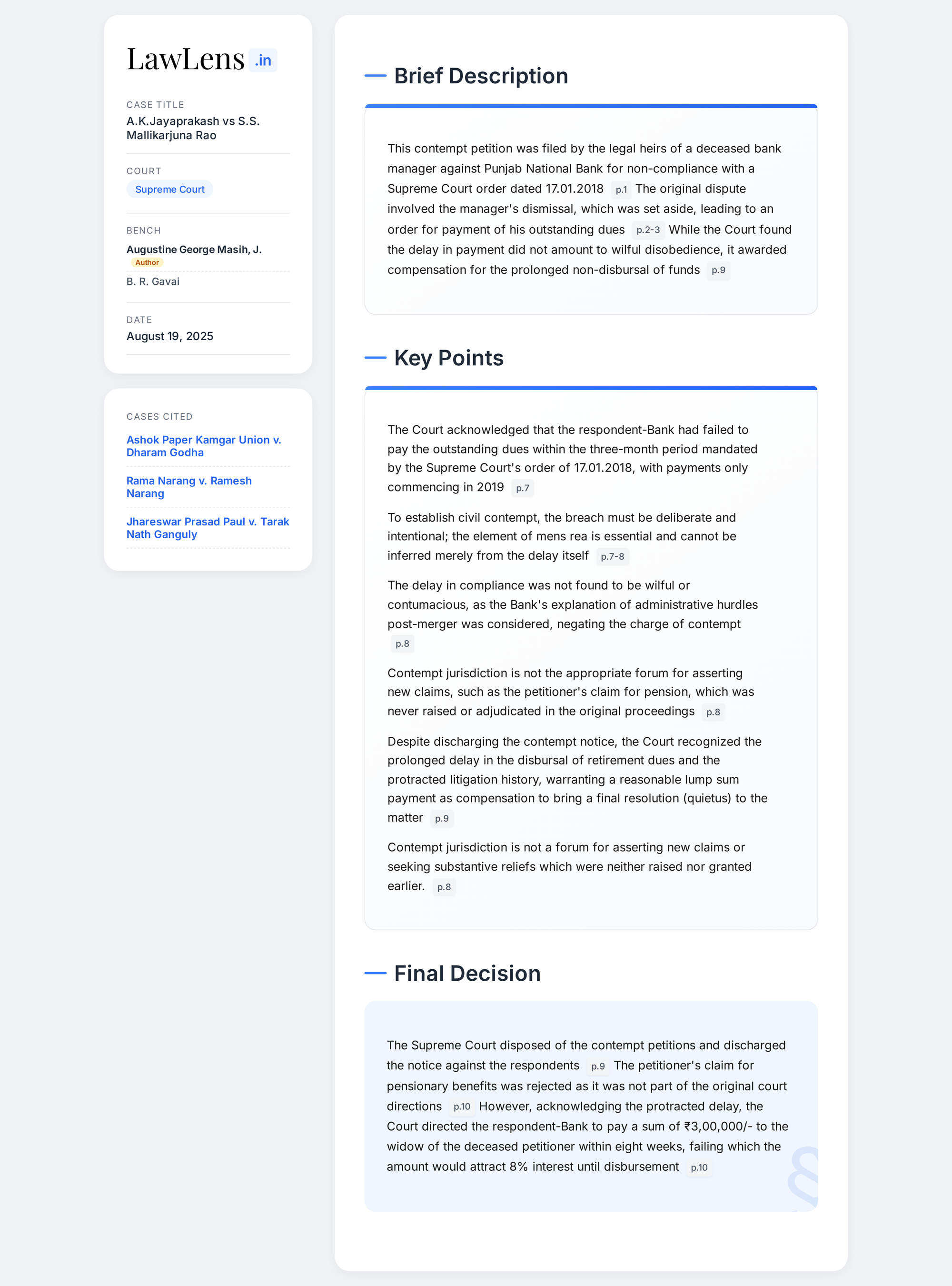 A.K. Jayaprakash (D) v. S.S. Mallikarjuna Rao 2025 INSC 1003 - Contempt Of Court