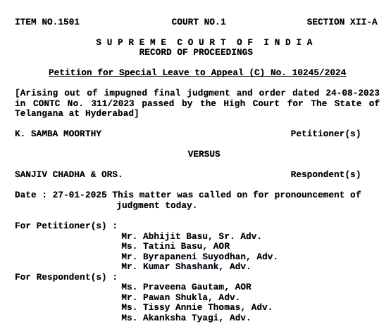 K. Samba Moorthy vs Sanjiv Chadha 2025 INSC 110 - Contempt Of Court