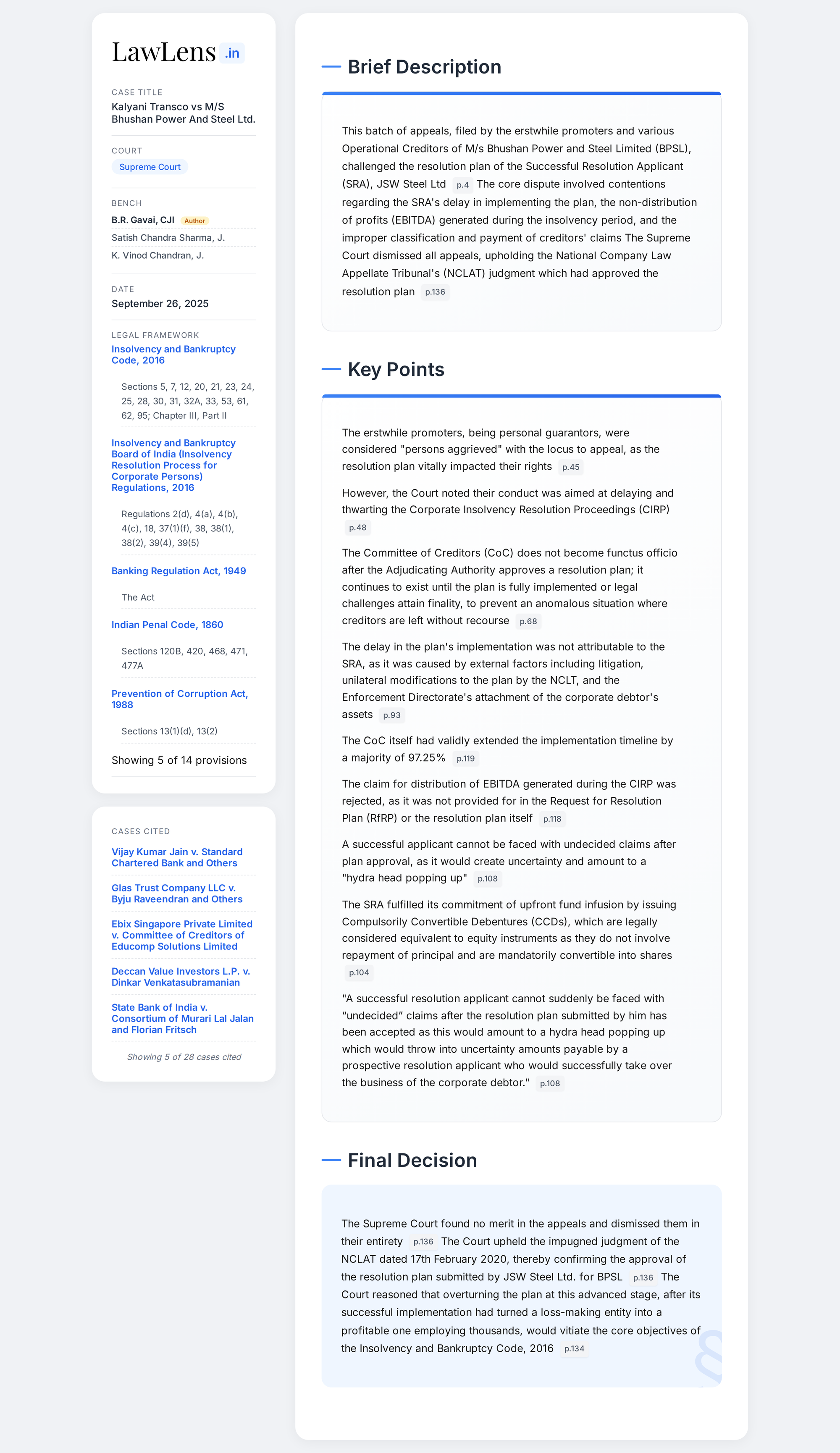 - Case Name: Kalyani Transco v. M/s Bhushan Power and Steel Limited & Ors (with connected appeals)