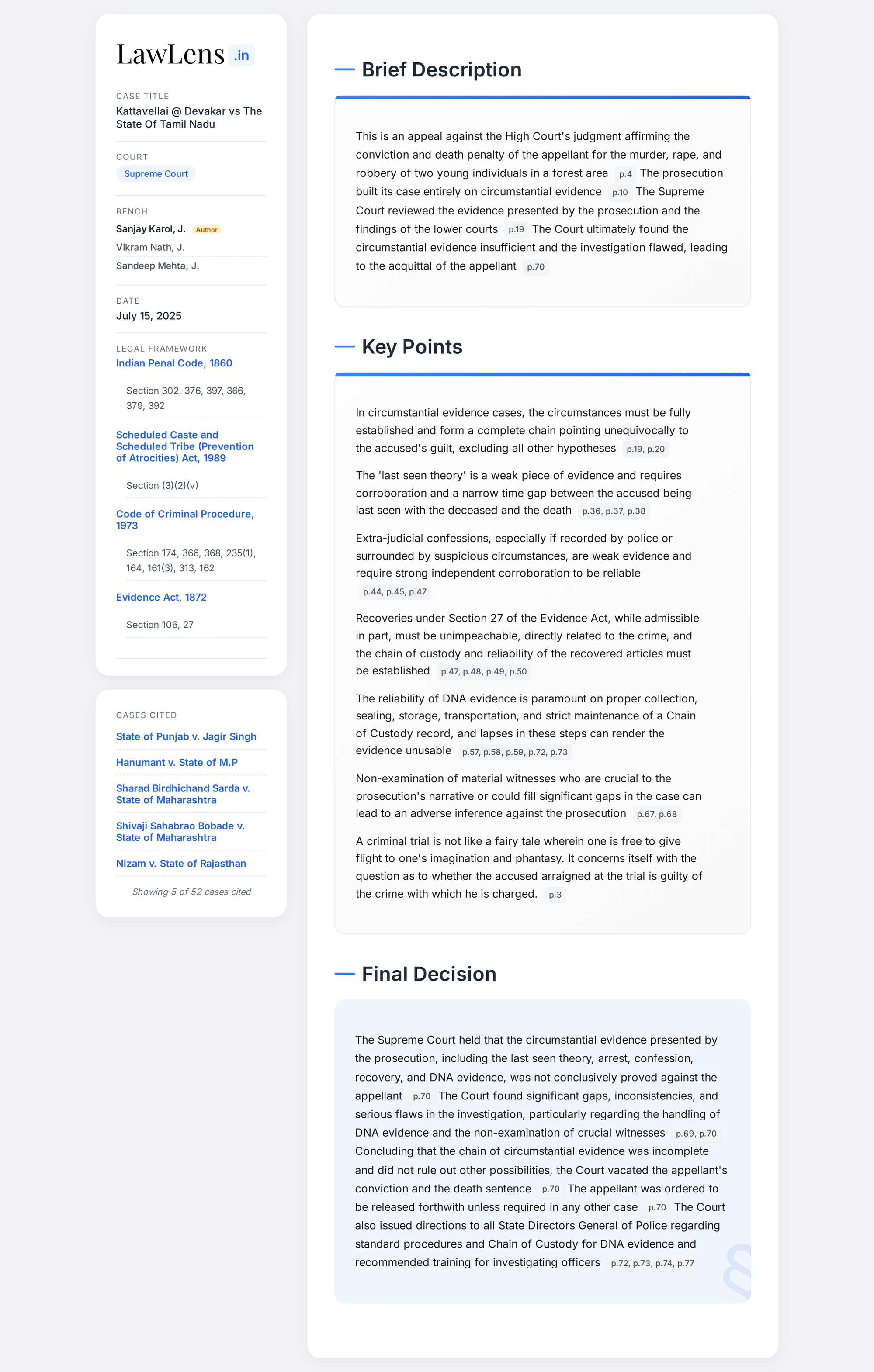 Kattavellai @ Devakar vs State Of Tamilnadu 2025 INSC 845 - DNA Sample Collections - Directions Issued