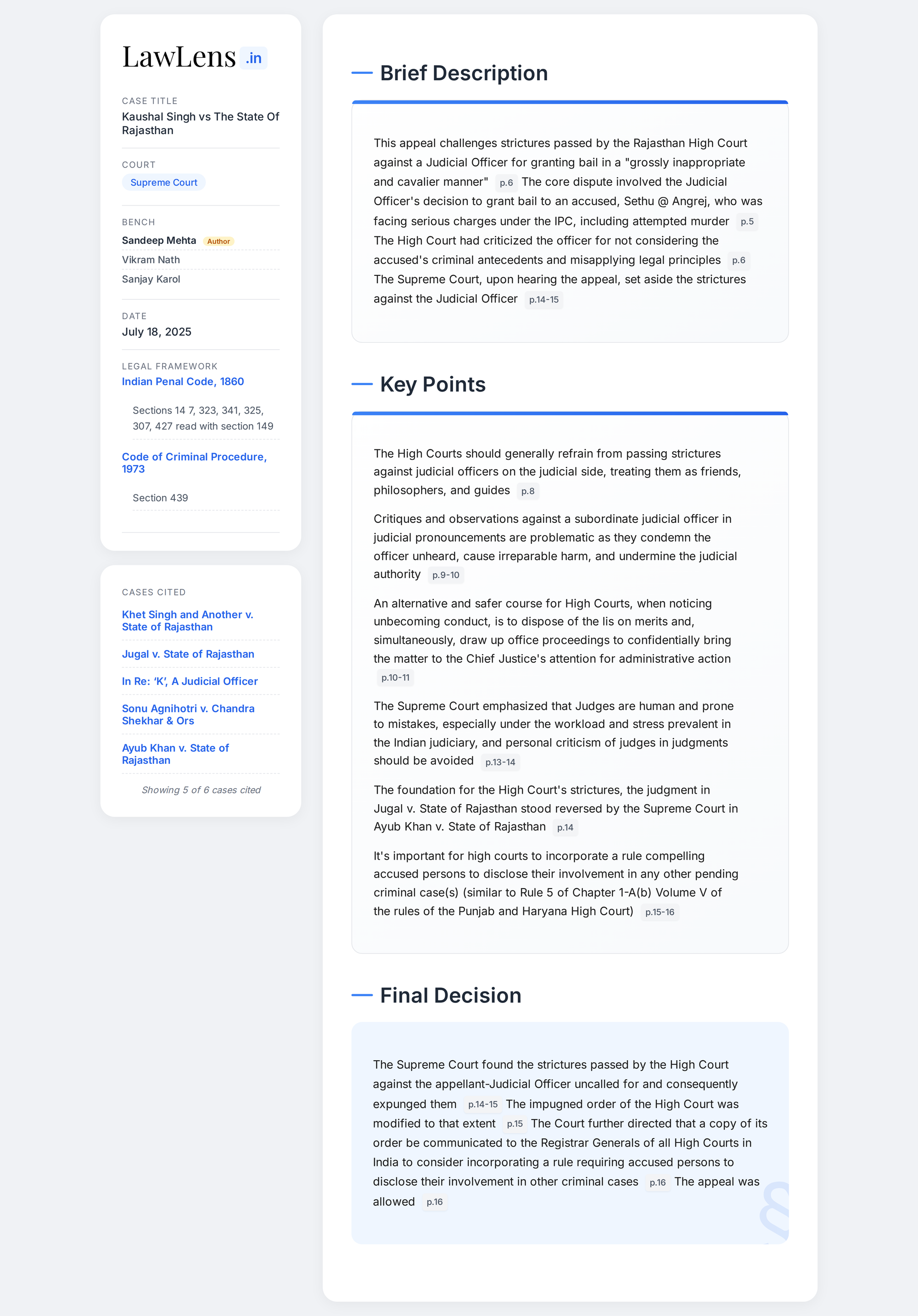 Kaushal Singh Vs State Of Rajashtan 2025 INSC 871 - Bail - Strictures Against Judicial Officers