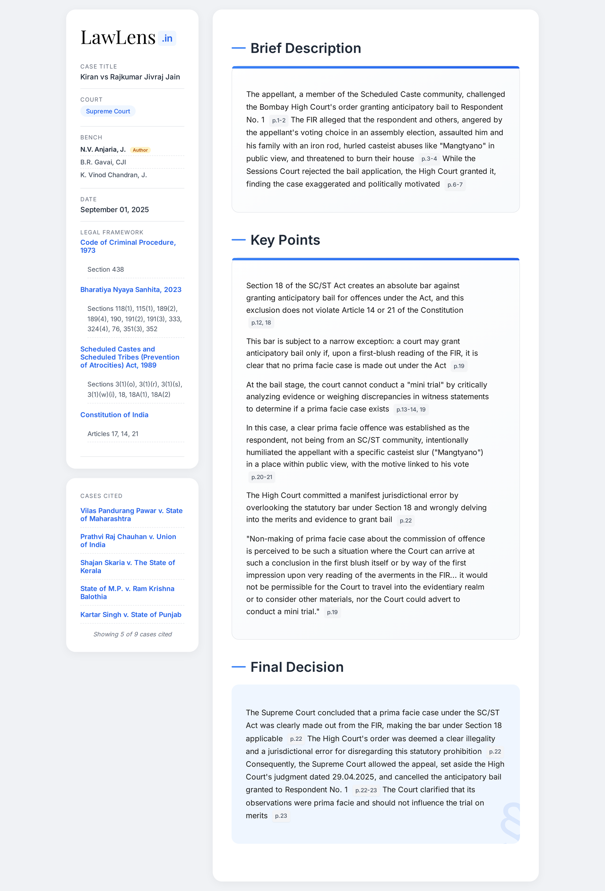 Kiran v. Rajkumar Jivraj Jain 2025 INSC 1067 - CrPC - Anticipatory Bail - SC-ST Act