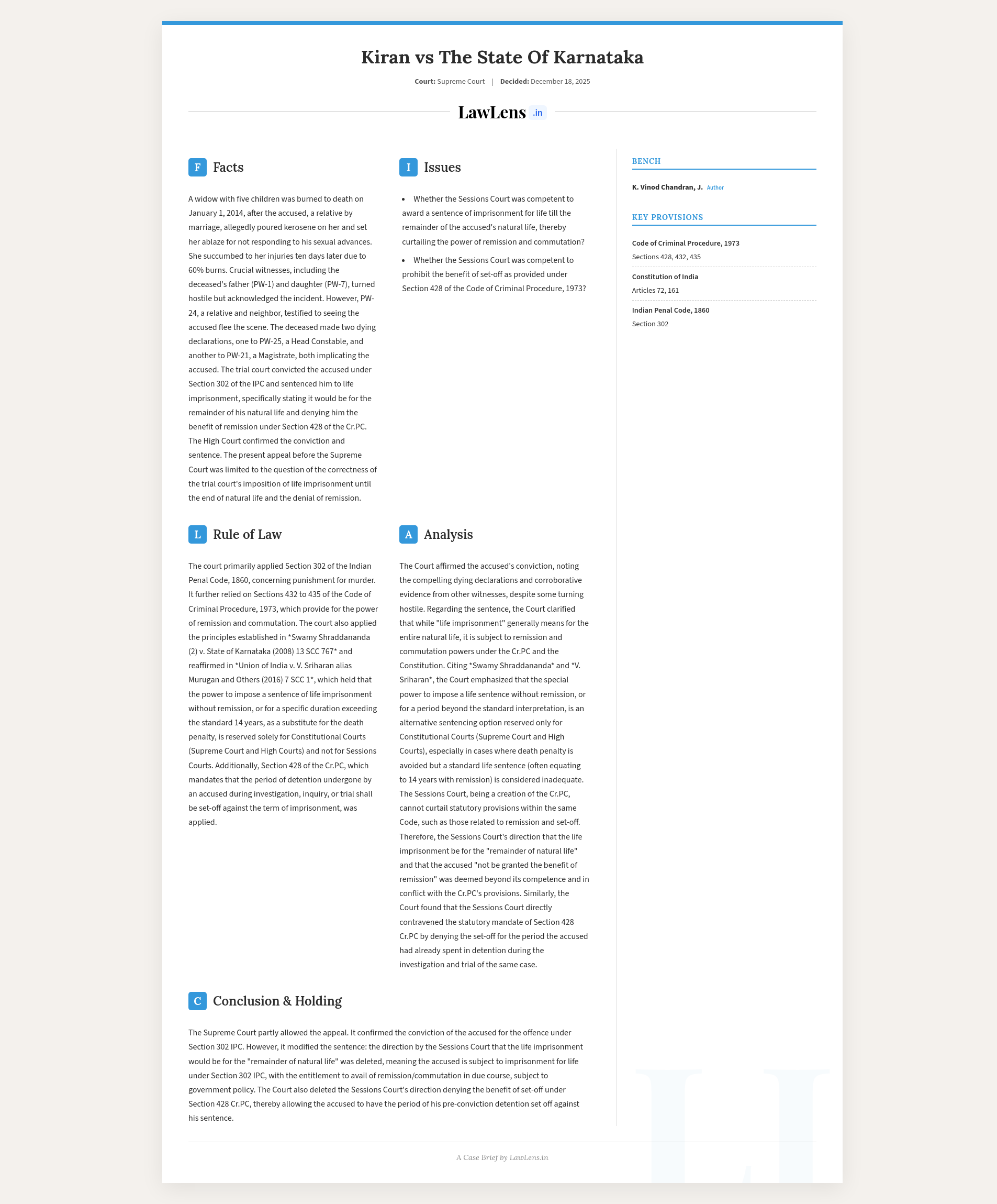 - Ravinder Singh v. State (NCT of Delhi), (2024) 2 SCC 323.