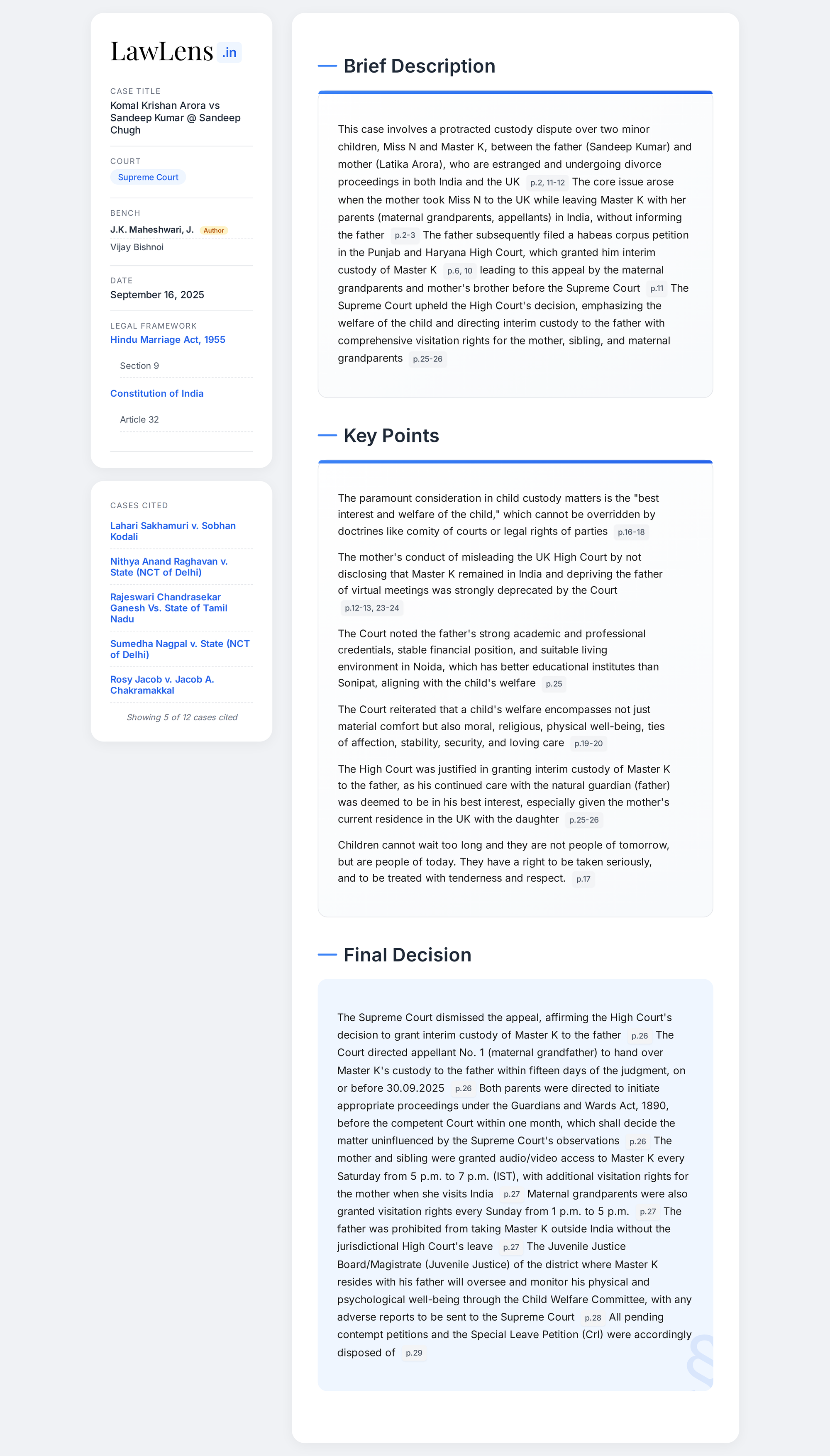 Komal Krishan Arora vs Sandeep Kumar 2025 INSC 1123 - Child Custody