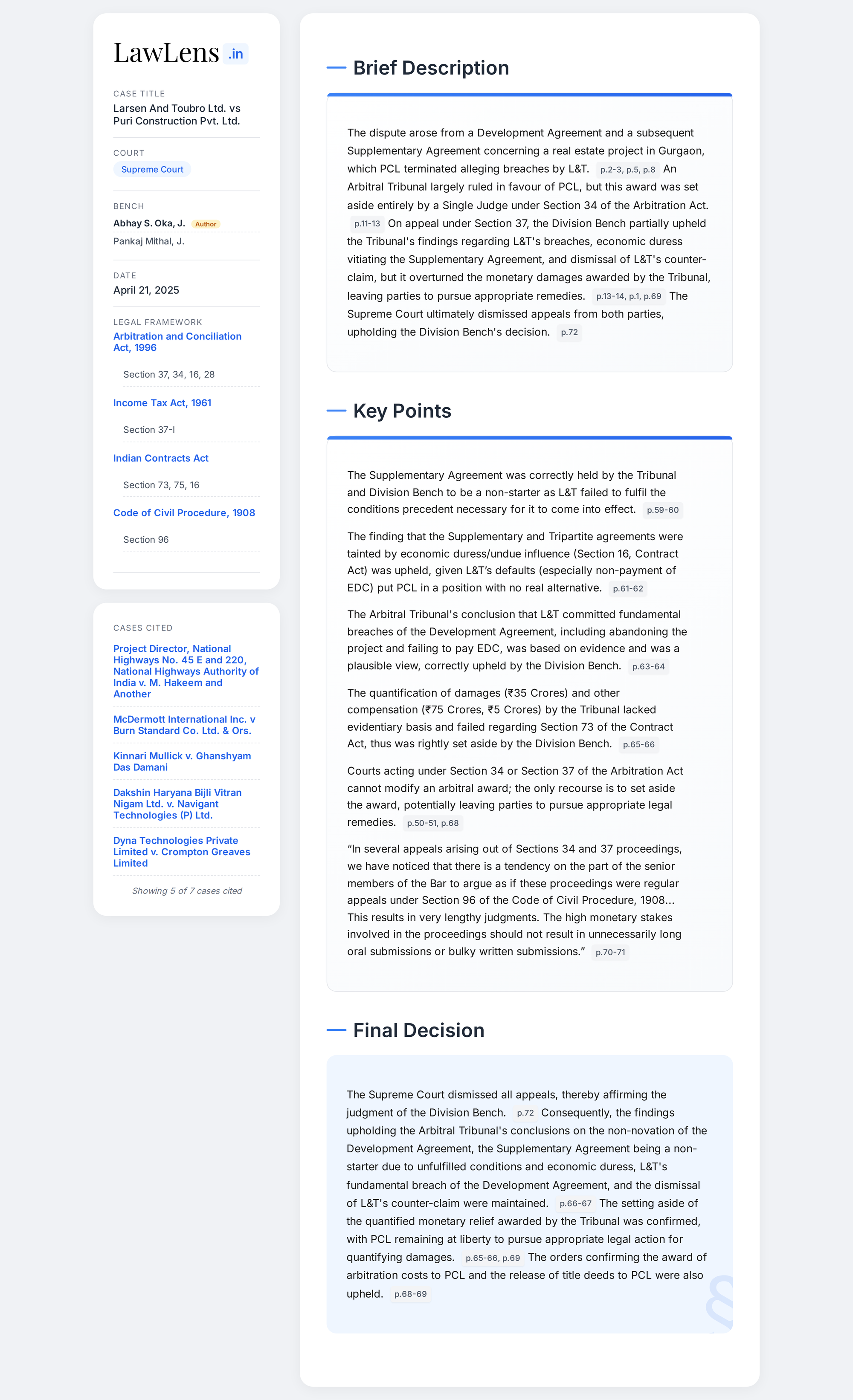 Larsen And Toubro Limited vs Puri Construction Pvt. Ltd. 2025 INSC 523 -Ss.34.37 Arbitration Act - Time Limit On Oral Submissions