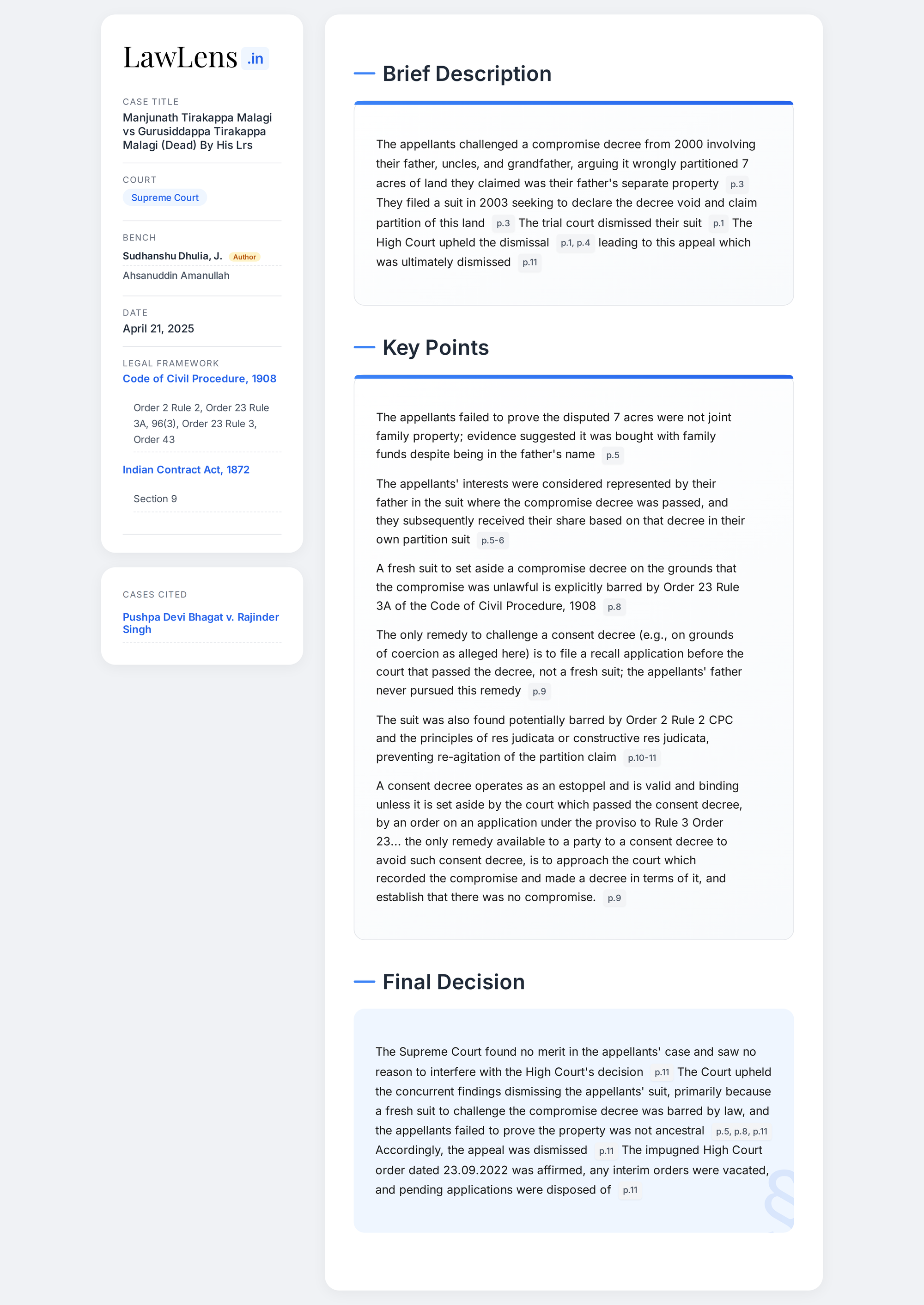 Manjunath Tirakappa Malagi vs Gurusiddappa Tirakappa Malagi (D) 2025 INSC 517 - Order XXIII Rule 3 CPC - Compromise Decree