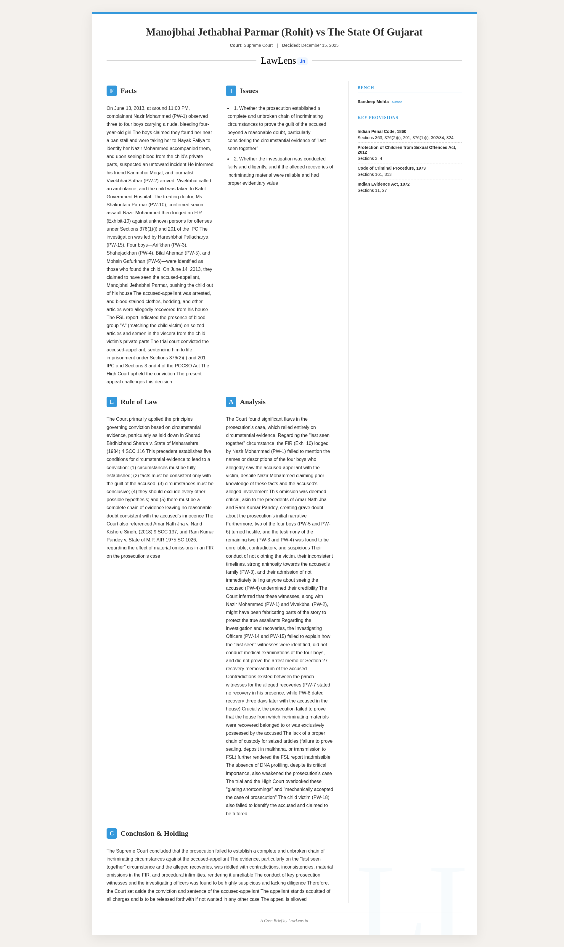 - Case Name: Manojbhai Jethabhai Parmar (Rohit) v. State of Gujarat.