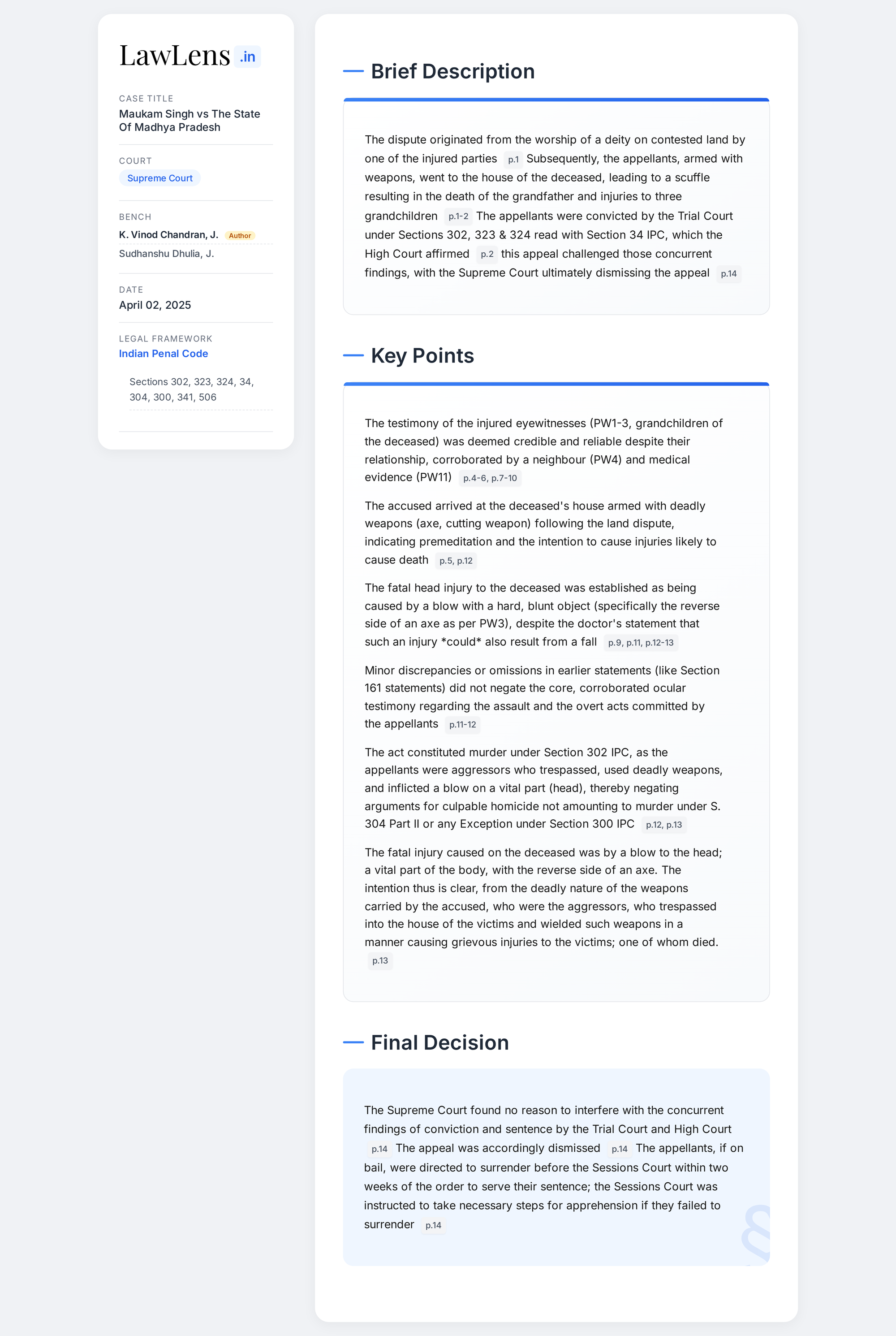 Maukam Singh vs State Of Madhya Pradesh 2025 INSC 435 - S. 302 IPC- Murder - Deadly Nature Of Weapons
